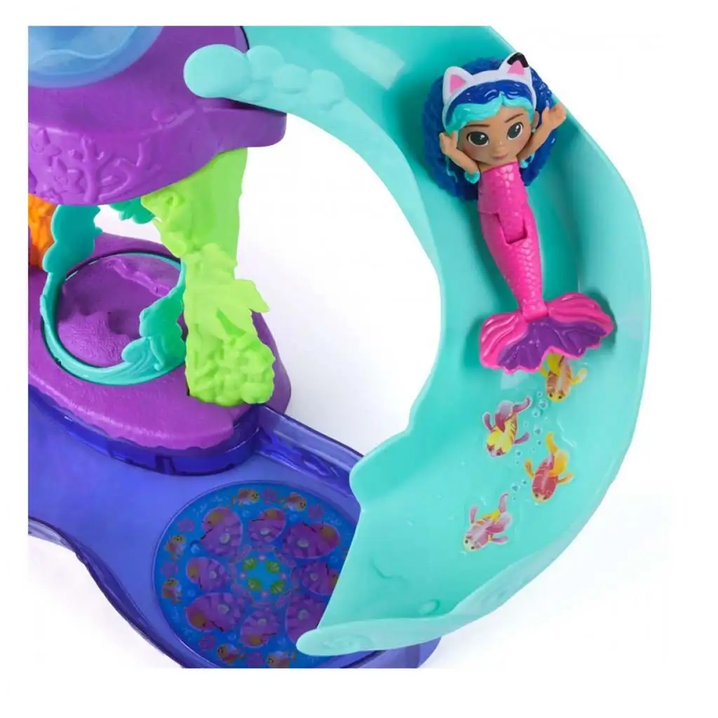 Acest set de joacă aduce la viață unul dintre cele mai magice locuri din universul Căsuței lui Gabi, unde atmosfera marină, culorile vii și elementele interactive garantează o experiență de joacă plină de voie bună. In centrul setului se află un acvariu tematic cu Motanul Marin Mercat cel simpatic, plin de detalii și descoperiri interesante. Setul îi cucerește imediat pe copii prin nuanțele sale vii de mov, turcoaz și roz, precum și designul care amintește de lumea basmelor.