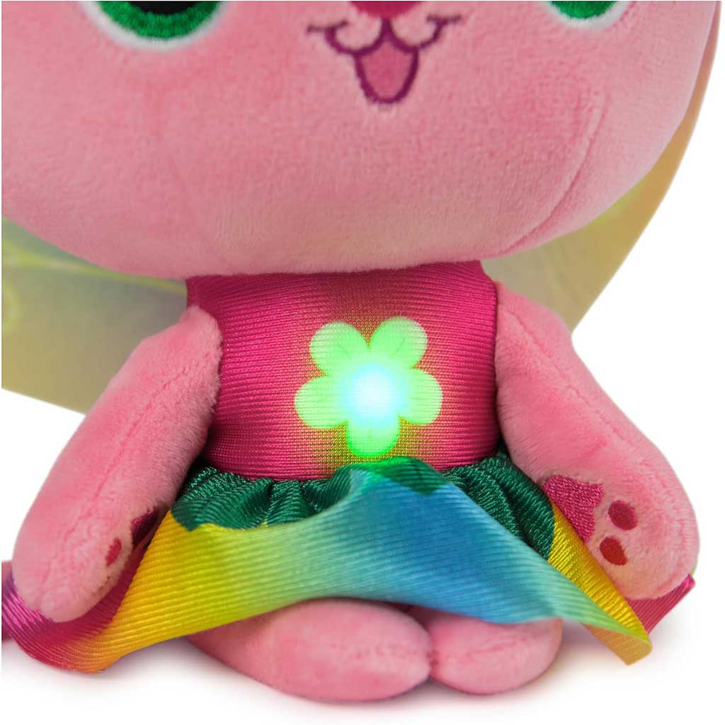 Funcția specială de lumină face jocul și mai palpitant: floriceaua mică de pe burtică se aprinde, creând o atmosferă și mai magică, chiar și la povestitul de seară. Plușul dispune de efecte de lumină și sunet care sugerează diverse stări, astfel încât copilul tău se poate implica ușor în jocuri pline de imaginație. Această figură drăguță nu doar distrează, ci sprijină și dezvoltarea emoțională și creativitatea. Cadoul ideal pentru orice fan al Casei de păpuși Gabi care iubește o lume fermecătoare, de zâne.