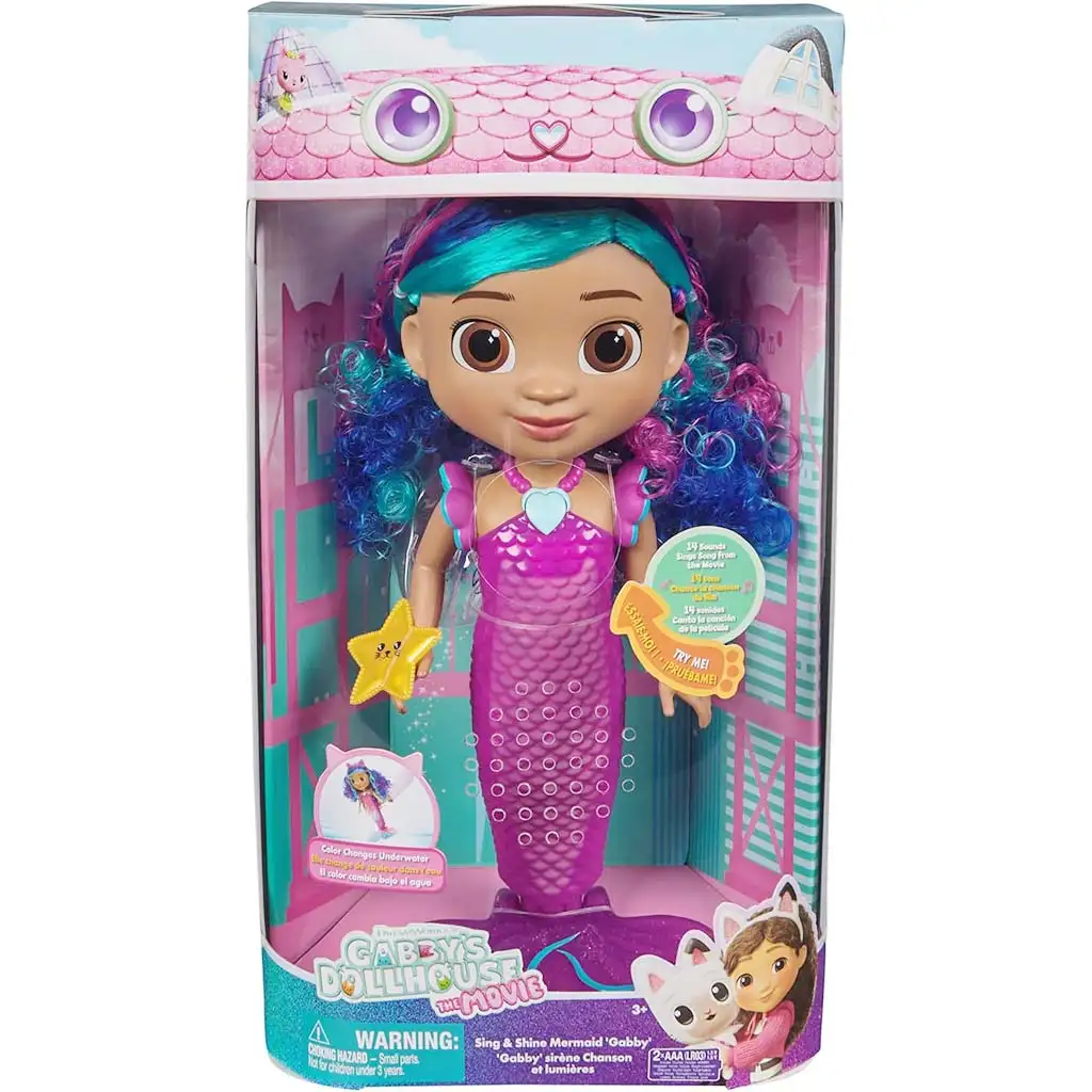 Casa de păpuși a lui Gabi – Film: Gabi sirena cântăreață și strălucitoare aduce o experiență magică în camera copiilor, direct din lumea popularului desen animat. Această păpușă sirenă specială nu este doar frumoasă, ci și interactivă: cântă, luminează și creează o atmosferă de poveste în timpul jocului. Coada de sirenă strălucitoare, care își schimbă culoarea, atrage imediat atenția copiilor, mai ales atunci când devine și mai spectaculoasă la contactul cu apa.