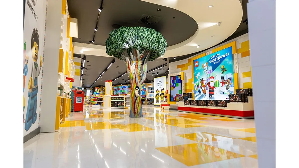 Modelul Rainbow Gum Tree a fost construit folosind 183 394 de cărămizi și în 1 271 de ore. Acest model se extinde de la nivelul inferior al clădirii până la al doilea etaj și prezintă fiecare animal nativ australian.În noul magazin se pot găsi numeroase funcții interactive. Masa povestitorilor permite fanilor să obțină o privire în culisele procesului de design LEGO, vizionând interviuri și videoclipuri pe ecrane. Peretele de selecție și construcție încurajează vizitatorii să aleagă piesele LEGO exacte necesare pentru construcțiile personalizate. În fiecare lună vor fi provocări gratuite de construcție LEGO și evenimente în magazin. În plus, Experții în cărămizi pot ajuta vizitatorii să găsească setul LEGO perfect pentru ei.