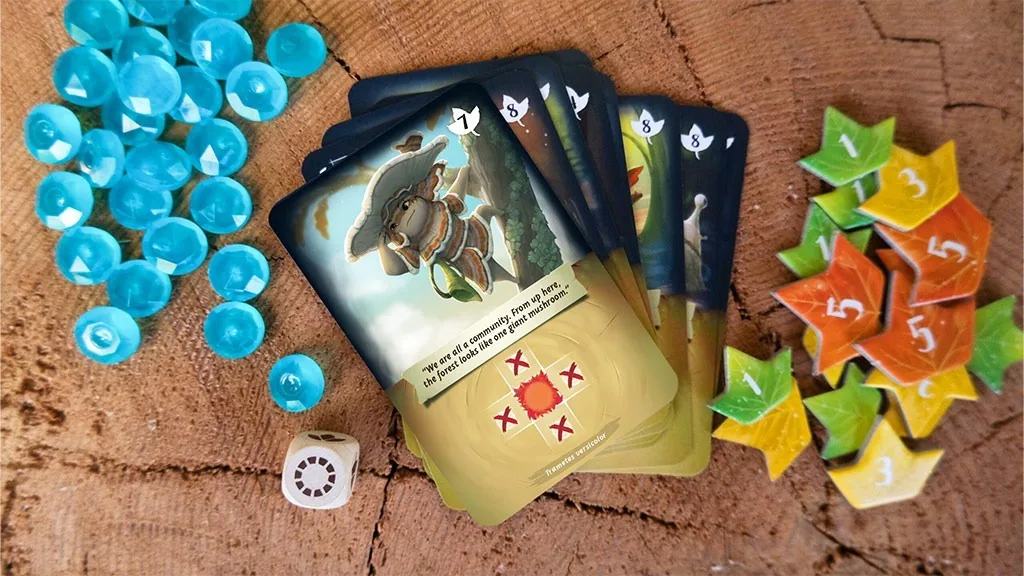 Mycelia este un joc de construit pachete care este complet tematic pe ciuperci și este special conceput pentru adolescenți. Pentru a câștiga jocul, copiii trebuie să colecteze ciuperci și frunze unice pentru a ajuta la îndepărtarea picăturilor de rouă de pe tablă. Pe măsură ce picăturile de rouă sunt îndepărtate de pe tablă, jucătorii le adaugă la Altarul Vieții. Ilustrațiile artistice din Mycelia sunt cu adevărat frumoase, prezentând nori pastel, apă de culoare cristal și personaje de ciuperci mai mari decât viața!