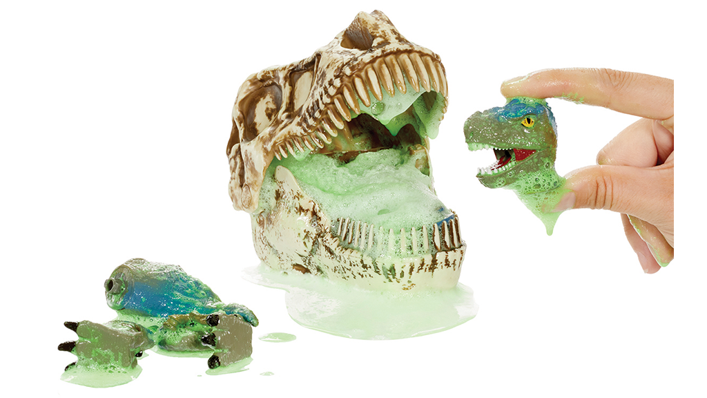 Deschide fălcile dinozaurului, toarnă apă sau slime-ul toxic inclus și urmărește cum spuma se scurge. Copiii pot aduna piesele pentru a crea un al doilea dinozaur surpriză. Acest joc nu este doar distractiv, ci dezvoltă și creativitatea și îndemânarea, în timp ce copiii explorează lumea dinozaurilor.