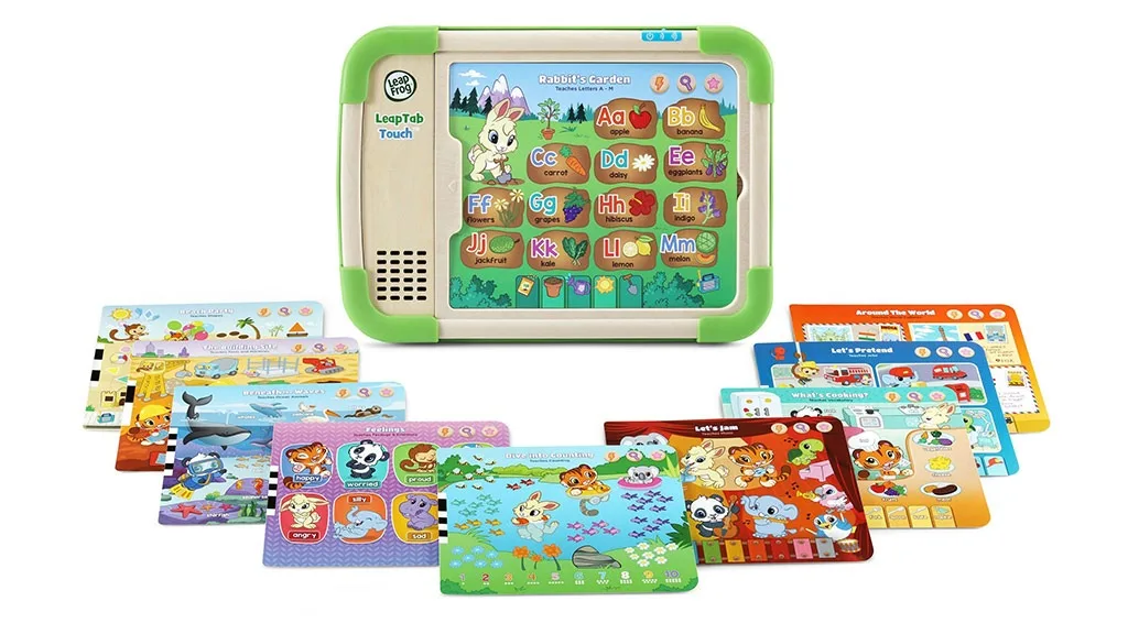 LeapTab Touch este o alternativă fără ecran pentru învățarea pe tabletă, concepută pentru copii de 3 ani și mai mari. LeapTab Touch se concentrează pe copiii care iubesc animalele și include 10 cărți cu două fețe, care îi introduc pe copii în teme învățate la grădiniță și în școala primară, inclusiv litere, numere și muzică, prin jocuri, puzzle-uri și activități.