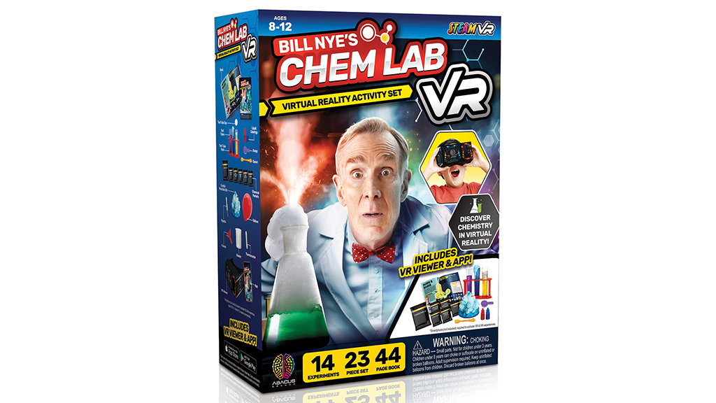 Alătură-te lui Bill Nye, Omul de Știință, pentru a descoperi proprietățile materiei, reacțiile chimice, nivelurile de pH și multe altele cu echipamentul de laborator inclus, cartea de 40 de pagini, ochelarii VR și aplicația însoțitoare. Acest program oferă oportunitatea de a explora lumea științei într-un mod interactiv și de a obține o înțelegere mai profundă a modului în care funcționează lumea din jurul nostru. Cu ajutorul tehnologiei VR, poți avea o experiență aproape reală în timp ce te cufunzi în lumea fascinantă a chimiei. Cartea și aplicația oferă informații suplimentare și experimente pentru a te ajuta să te adâncești și mai mult în tainele științei.