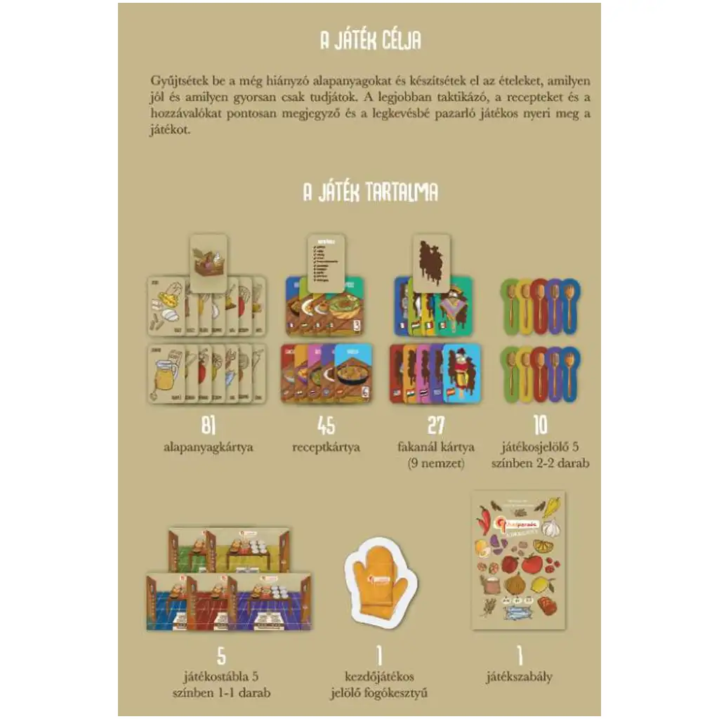Imaginează-ți că ești maestrul bucătar al bucătăriei, unde scopul este să prepari cele mai delicioase mâncăruri – dar câștigi doar dacă gestionezi cu istețime ingredientele! Chefparade este un joc de societate palpitant și distractiv pentru întreaga familie, unde copiii și părinții pot învăța împreună să gătească inteligent – într-o formă jucăușă.