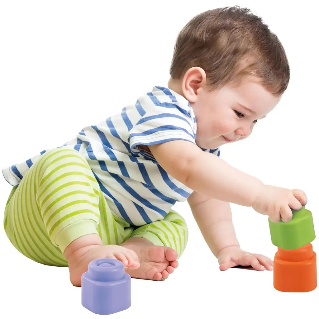 Blocurile de construcție Clemmy sunt lavabile și fabricate din materiale non-toxice, fiind ideale pentru cei mai mici. Forma și moliciunea lor permit o construcție și manipulare ușoară, astfel încât copiii să își poată explora în siguranță creativitatea.