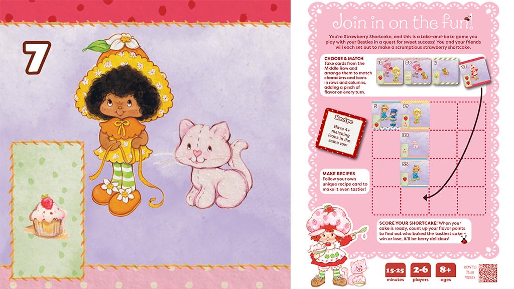 Copiii își completează pe rând cardurile pentru a crea cea mai delicioasă rețetă de tort! Acest joc nu este doar distractiv, ci dezvoltă și creativitatea și munca în echipă. Copiii pot combina diferite ingrediente și arome, în timp ce învață despre materiile prime și procesul de coacere. La sfârșitul jocului, toată lumea își poate împărtăși propria rețetă și chiar pot pregăti tortul visat pentru a gusta fructul muncii comune.În acest joc de cărți cu ritm rapid, jucătorii și cei mai buni prieteni ai lor (cunoscuți și sub numele de Berry Friends Forever) concurează între ei pentru a crea shortcake-ul perfect pentru petrecerea lui Strawberry. Pentru a-și finaliza rețetele de tort, copiii de 8 ani și mai mari trebuie să plaseze strategic cărțile, să colecteze accesorii de petrecere, să pregătească delicii dulci și să se confrunte cu provocările surpriză alături de personajele lor preferate. Jocul include chiar și autocolante cu miros de căpșuni, astfel încât copiii să poată mirosi creațiile lor delicioase.