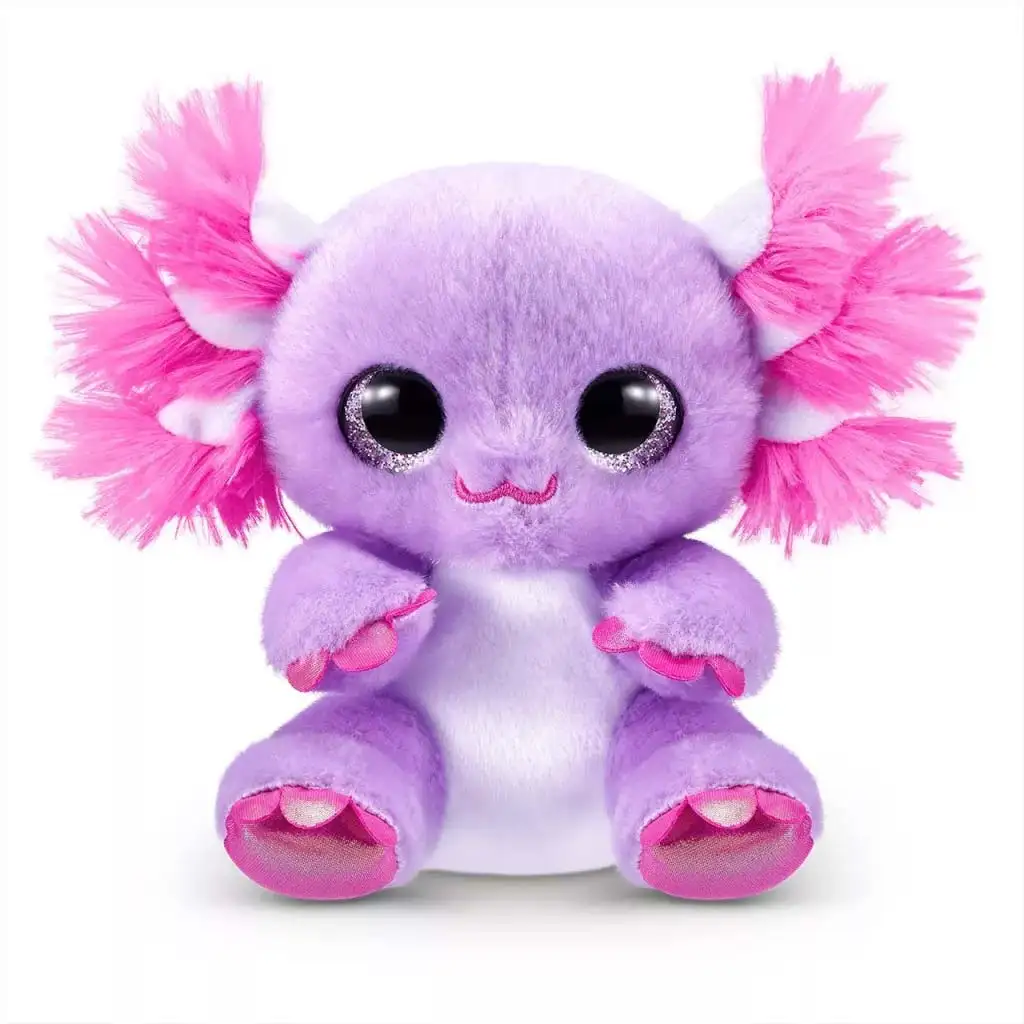 Coco Cones Originals Pebbles axolotl de pluș este un prieten de pluș cu adevărat special și irezistibil, care te farmecă de la prima vedere. Axolotl-ul zâmbitor, cu nuanțe mov și cu ochii săi mari și strălucitori, alături de „branhii” roz, moi și pufoase, este o adevărată raritate în lumea plușurilor. Această figurină drăgălașă nu este doar adorabilă, ci este realizată din materiale premium, de calitate superioară, fiind perfectă pentru momentele de îmbrățișat, pentru a oferi liniște sau pentru somnul de seară.