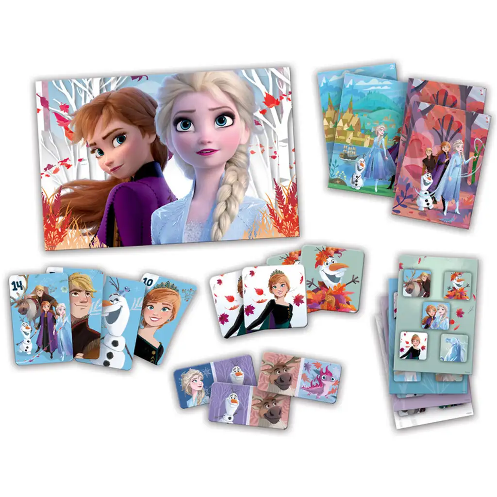 Colecția de jocuri de societate Trefl - Frozen 8 în 1 este alegerea perfectă pentru toți fanii Anna, Elsa și Olaf care doresc să se cufunde în lumea magică a Arendelle! Setul conține 8 jocuri diferite, fiecare cu personaje din Frozen, astfel încât fiecare joc oferă noi aventuri și provocări. Copiii pot alege dintre diferite jocuri, cum ar fi jocul de memorie, domino, puzzle, căutare de cuvinte, precum și clasicele Nu te supăra, frate! și Lotto.