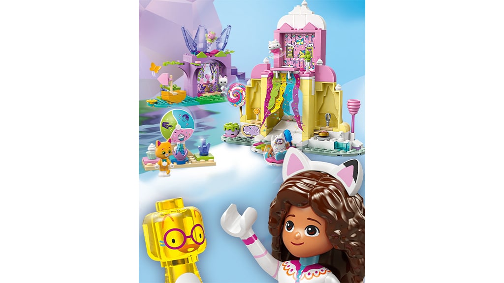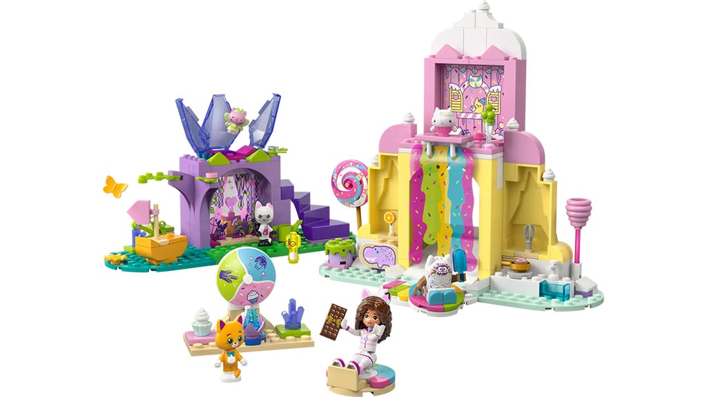 Familiile pot construi împreună setul LEGO Casa de păpuși a lui Gabi: Muntele Deliciilor Dulci și Grădina Pisicii, care conține 263 piese. În set se regăsesc personajele îndrăgite din film, printre care Gabi, Pandy Paws, Chumsley, Cakey, Eraser Cat, Cookie Bobby și Kitty Fairy. Tinerii constructori pot realiza Muntele Deliciilor Dulci, decorat cu colaci plutitori, vârfuri de tort și cornete uriașe de înghețată. Acest set nu doar dezvoltă creativitatea, ci oferă și o oportunitate excelentă pentru joacă în comun și petrecerea timpului în familie. Cu elementele colorate și detaliate, copiii pot crea scene după propria imaginație, jucându-se cu personajele lor preferate.