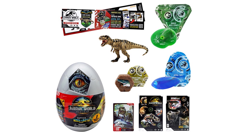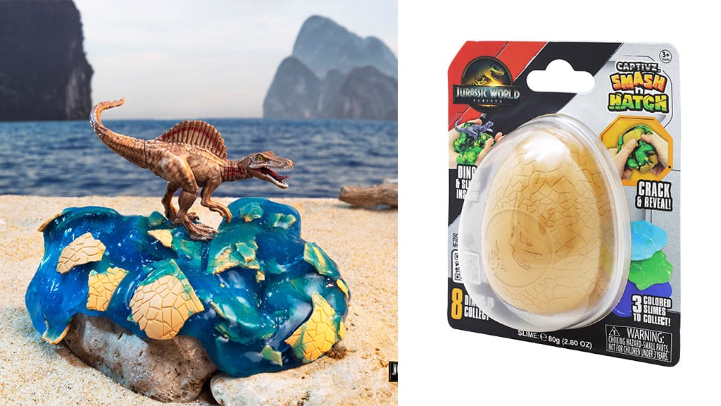 Ce a fost mai întâi, dinozaurul sau oul? Acum copiii pot descoperi singuri răspunsul cu ouăle misterioase care pot fi sparte! La deschiderea unui Ou Slime, îi așteaptă unul dintre cei 13 dinozauri, un card de colecție și o porție de slime elastic. Ouăl Surpriză ascund un monstru și conțin, de asemenea, trei substanțe lipicioase și elastice. Copiii pot sparge și Ouăle Smash and Hatch – după ce găsesc dinozaurul, restul oului poate fi împins în slime, ceea ce oferă o senzație cu adevărat specială și satisfăcătoare. Zeci de dinozauri așteaptă să fie colecționați, astfel copiii pot participa ore întregi la o vânătoare de comori palpitantă!