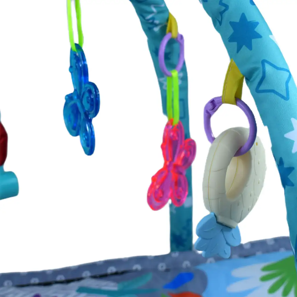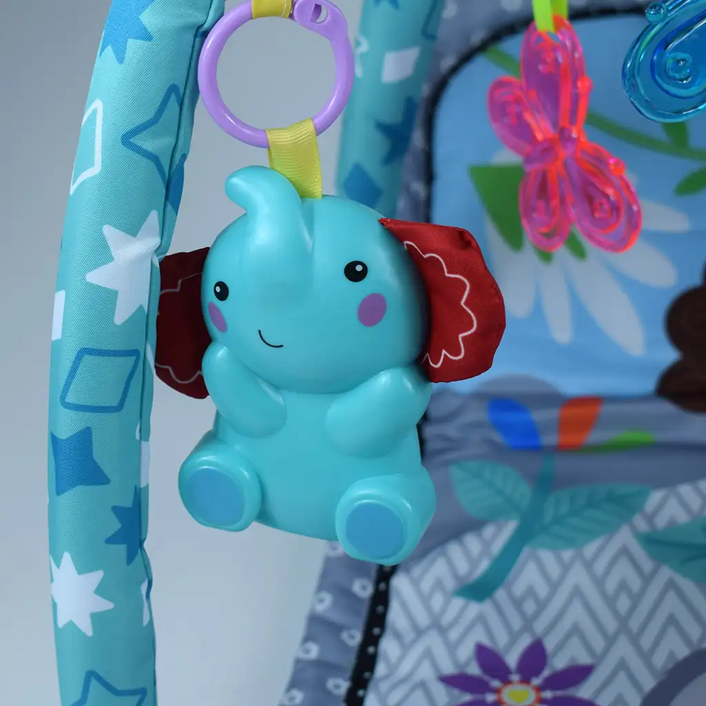 Covorașul oferă o experiență distractivă și interactivă, cu jucăriile care atârnă deasupra. Aceste jucării sporesc și mai mult atenția copilului și ajută la dezvoltarea coordonării micuților. Melodiile plăcute, emise de un elefant adorabil, oferă distracție și experiențe suplimentare bebelușilor. Astfel, covorașul de joacă pentru bebeluși nu este doar distractiv, ci și educativ, contribuind la dezvoltarea cognitivă și motorie a bebelușilor.