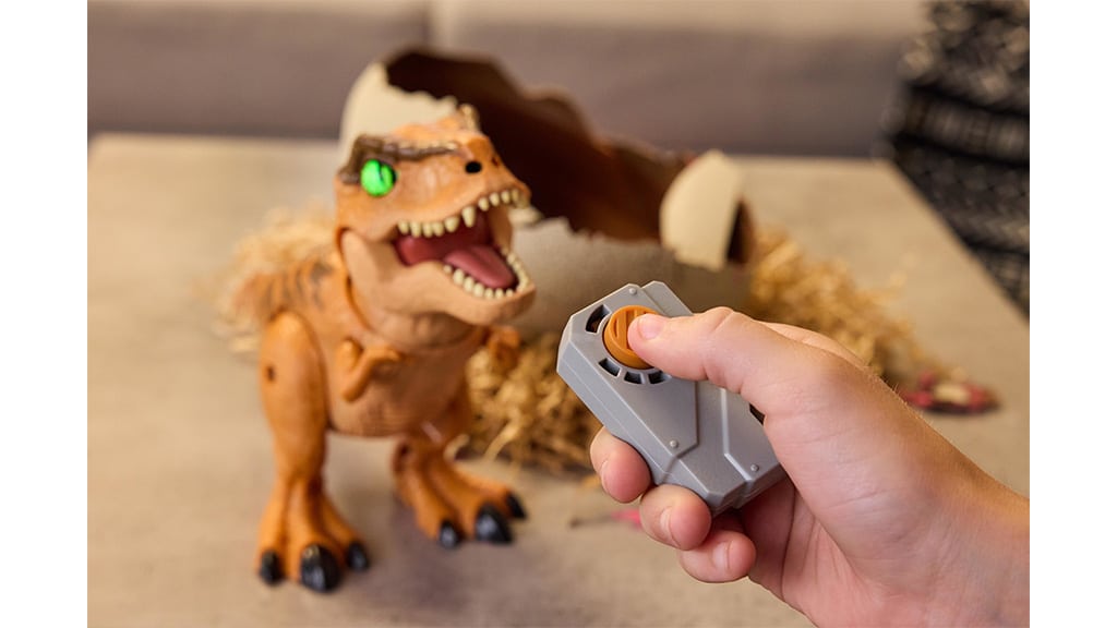 Familiile pot aduce distracție **palpitantă** în camera de joacă cu ajutorul celui mai nou joc cu **T. rex**, inspirat de seria de filme **Jurassic World**. **Eclozarea oului** începe atunci când copiii de **5 ani sau mai mari** bat ușor în ou. Copiii pot urmări cum **coaja se crapă** și un **pui de T. rex** iese din învelișul lipicios. Acest joc nu este doar distractiv, ci dezvoltă și **imaginația** și **abilitățile motorii fine**, în timp ce copiii pot experimenta magia lumii dinozaurilor.Jocul preistoric începe atunci când dinozaurul iese din ou. Copiii pot recrea momentele lor preferate din Jurassic World în timp ce se joacă, antrenează și interacționează cu T. rex. Fiecare interacțiune modelează personalitatea dinozaurului, astfel copiii pot vedea cum T. rex se dezvoltă fie într-un prădător feroce, fie într-un companion prietenos. Acest joc nu doar dezvoltă creativitatea și imaginația, ci ajută și la formarea abilităților sociale și a empatiei, în timp ce copiii inventează și trăiesc propriile povești alături de dinozaurul lor.