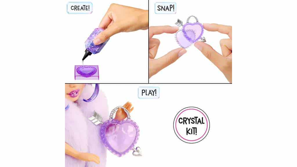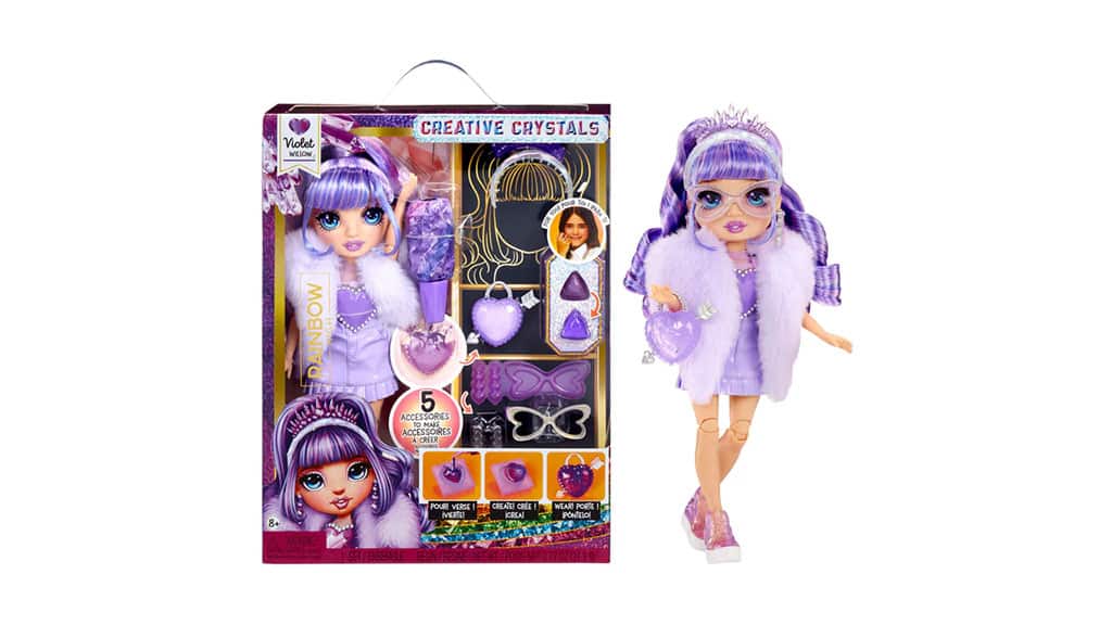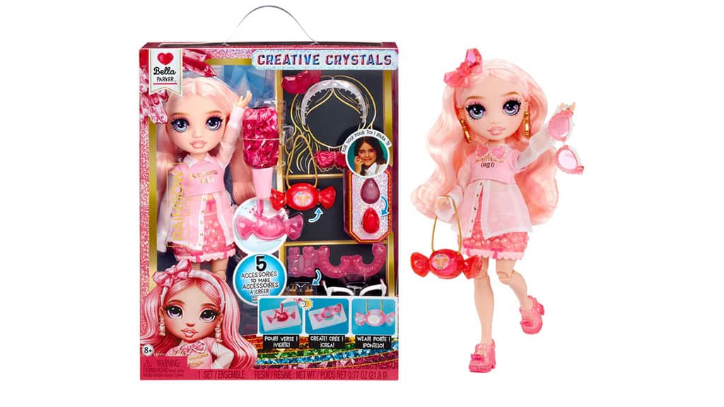 Colecția MGA Rainbow High Creative Crystal Dolls sărbătorește creația, creativitatea și moda într-o formă clasică de păpușă. Fiecare păpușă vine cu instrumente care permit copiilor să creeze rapid și interesant accesorii drăguțe și colorate pentru noul lor prieten de modă. Cu ajutorul rășinii și formelor incluse, copiii pot adăuga decorațiuni la aspectul deja distractiv și unic al păpușilor, cu piese de rășină realizate de ei înșiși. Chiar și atunci când nu este timp pentru meșteșuguri (sau după ce accesoriile din rășină sunt gata), aceste păpuși rămân plăcute. Cu membrele lor flexibile și părul combinabil, oferă ore întregi de distracție și experiențe vesele. Cu colecția de cinci păpuși, copiii își pot alege preferata sau pot spera să le adune pe toate.