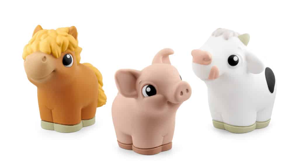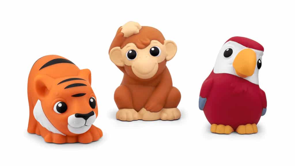 Fiecare figurină este moale și compresibilă, astfel încât se potrivește perfect în mâinile copiilor mici. Aceste jucării nu sunt doar distractive, ci și sigure pentru cei mai mici, deoarece sunt ușor de apucat și nu conțin părți ascuțite. Materialul moale permite copiilor să se joace cu ele fără griji, în timp ce își dezvoltă abilitățile motorii fine și simțul tactil.Aceste figurine moi și comprimate ajută la dezvoltarea imaginației copiilor mici, în timp ce îi distrează cu sunete reale, cântece potrivite vârstei și povești prietenoase pentru copii, atunci când sunt plasate pe un dispozitiv Toniebox 1 sau 2. Colecția de început conține trei tipuri de trio-uri Tonies: Fermă, Călătorie și Junglă. Aceste figurine nu doar distrează, ci dezvoltă și înțelegerea auditivă, abilitățile lingvistice și creativitatea. Copiii le pot folosi cu ușurință, astfel încât pot descoperi singuri lumea poveștilor și a cântecelor, în timp ce învață într-un mediu sigur și jucăuș.