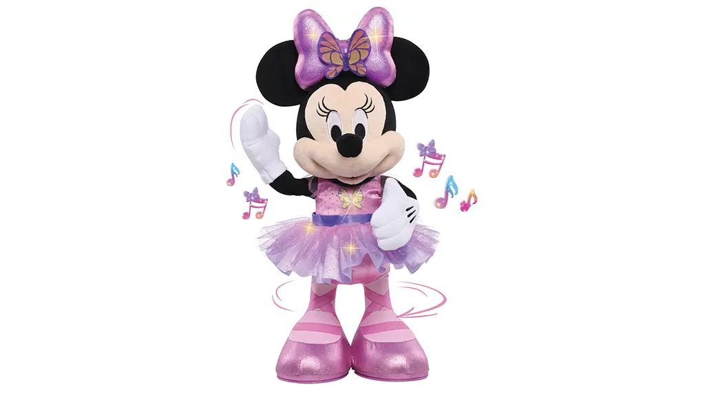 Trendul centrului de balet poate că se impune în garderobele mamelor, dar acum intră serios și în camerele de joc cu adorabilul jucărie Disney Junior Minnie Mouse Ballerina Butterfly Plush de la compania Just Play!Această jucărie de pluș este inspirată din serialul Disney Junior "Minnies Bow-Toons", având elemente de joc interactive și un cap moale de pluș. Dar aici, centrul atenției este Minnie, cu tutu-ul ei rotativ; când copiii apasă butonul de pe pieptul lui Minnie, tutu-ul de tulle se aprinde și Minnie cântă melodii preînregistrate.Este evident că jucăria de pluș obține puncte excelente în categoria estetică. Tutu-ul și accesoriul de cap cu temă de fluture a lui Minnie încântă toate viitoarele balerine Balanchine. Luminițele strălucitoare, cântecul lui Minnie "Ca un fluture" și mișcările de dans (datorită roților ascunse, Minnie poate dansa și pe suprafețe plane) îmbunătățesc și mai mult farmecul său.Jucăria interactivă de pluș este destinată copiilor de 3 ani și peste, dar poate fi atractivă și pentru cei mai mari de 6 ani, mai ales pentru dans. În special dacă este preferat, acest joc