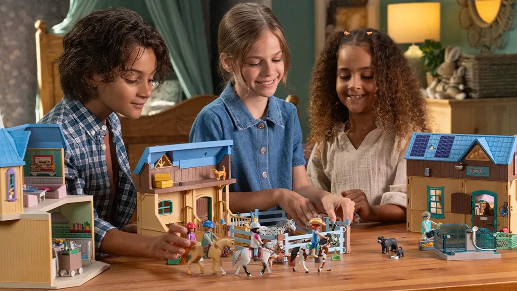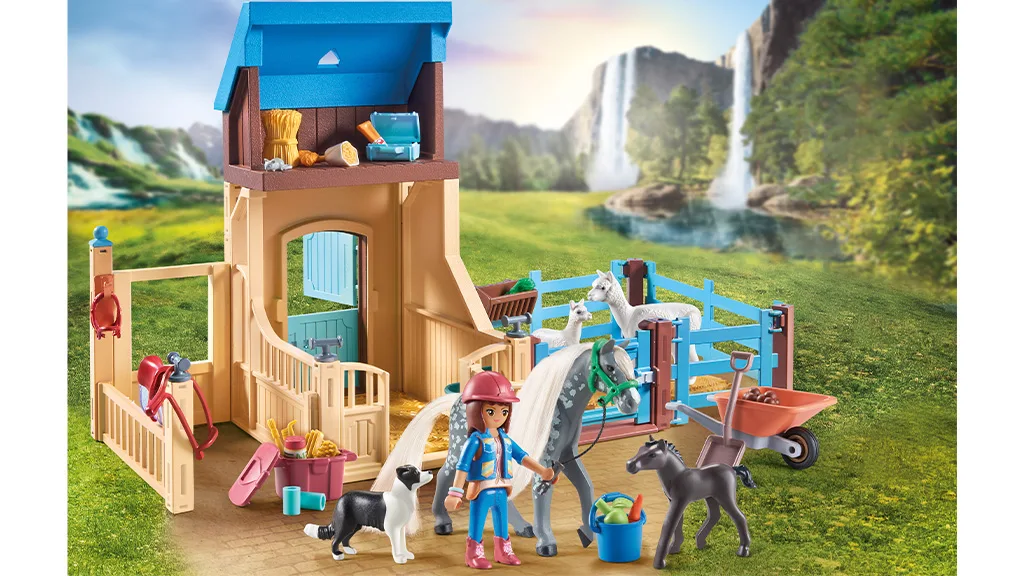 Sari în șa și pregătește-te pentru o călătorie imaginară cu setul magic Playmobil Ferma Ecvestră de la Cascadă. Copiii se pot alătura Isabellei, Zoé, Ben, Ameliei, Ellie și puiilor lor de cai și ponei în aventuri nesfârșite de joc de rol. De la imensul set de 264 de piese Ferma Ecvestră de la Cascadă, la Terapia Ecvestră și până la Kitul de Practică Veterinară, copiii pot explora toate emoțiile vieții la fermă.