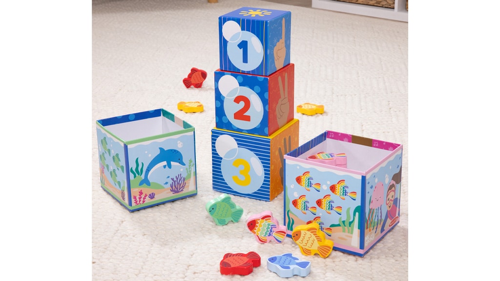 Setul Melissa & Doug Ms. Rachel Cuburi de sortare și numărare inspirat de unul dintre cântecele cunoscute ale îndrăgitei educatoare, Ms. Rachel. Acest joc nu este doar distractiv, ci dezvoltă și gândirea logică, abilitățile motorii fine și competențele de numărare ale copiilor. Cuburile colorate, care pot fi așezate una în alta, îi ajută pe copii să recunoască culorile, formele și numerele, stimulând în același timp în mod jucăuș învățarea și creativitatea. Setul este o alegere ideală pentru orice copil mic care iubește să învețe prin joacă.Cei mici își pot dezvolta abilitățile motorii fine în timp ce participă la jocuri creative cu Primul Autobuz de Învățare al lui Ms. Rachel. Trebuie doar să așeze figurina Ms. Rachel pe scaunul șoferului și vor porni diverse efecte sonore, inclusiv îndrăgita melodie „Wheels on the Bus”. Când figurina Herbie este pusă pe bancheta din spate, copiii pot observa cum se mișcă în sus și în jos în timpul deplasării. Prin împingerea autobuzului, apăsarea claxonului și răspunsurile la întrebările care stimulează învățarea, copiii pot inventa noi scenarii sau chiar pot recrea situații cunoscute din videoclipurile lui Ms. Rachel. Acest joc nu este doar distractiv, ci ajută și la dezvoltarea imaginației și a abilităților de comunicare, în timp ce copiii învață și se joacă activ.Copiii își pot dezvolta în continuare abilitățile de sortare și aranjare cu ajutorul setului Melissa & Doug Ms. Rachel Cuburi de sortare și numărare. Acest set s-a inspirat din cântecul „Bubble, Bubble, Pop!” al lui Ms. Rachel și conține cinci cuburi de carton cu tematică de acvariu. Pe fiecare cub se găsește un număr mare, o mână desenată care arată același număr, peștișori colorați și alte scene subacvatice. Setul include și 15 peștișori de jucărie din lemn. Cei mici pot aranja, sorta și asocia elementele, în timp ce se familiarizează jucăuș cu numerele, culorile și viața marină. Acest joc nu este doar distractiv, ci dezvoltă și abilitățile motorii fine, gândirea logică și spiritul de observație, în timp ce copiii descoperă cu bucurie diferite forme și culori. O alegere ideală pentru orice copil mic care iubește să învețe prin joacă!