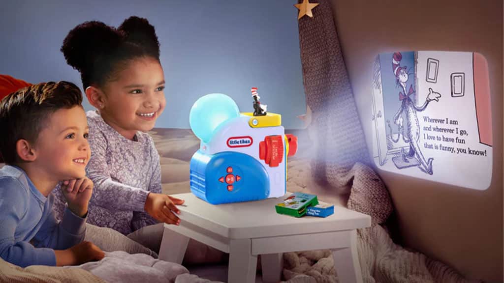 Nu contează dacă îți plac ouăle verzi și șunca sau dacă te cheamă Sam, acest joc de povestit poate deveni noul favorit al familiei. Acest joc nu este doar distractiv, ci dezvoltă și creativitatea și sentimentul de apartenență. Atât cei mici, cât și cei mari se pot bucura de el în timp ce creează și râd împreună. Descoperiți împreună lumea magică a poveștilor și creați-vă propriile tradiții de familie cu acest joc special!Familiile au îndrăgit deja proiectorul Little Tikes – acesta este un proiector de dimensiuni pentru copii, care proiectează pagini de povești pe perete, în timp ce redă cu voce tare dialogurile poveștii. De acum înainte, familiile pot include și poveștile preferate ale lui Dr. Seuss în rutina de seară! Acest dispozitiv special nu este doar distractiv, ci dezvoltă imaginația copiilor și ajută la crearea momentelor de familie împreună. Cu ajutorul Story Dream Machine, cititul și ascultarea poveștilor devin o adevărată experiență, care unește membrii familiei și ușurează adormirea.