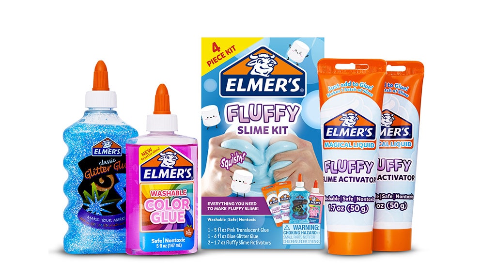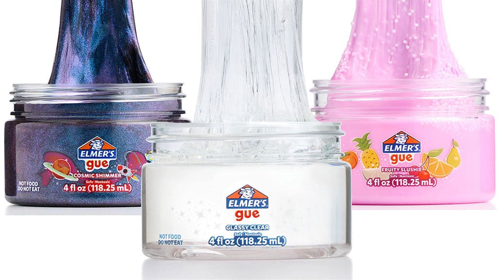 Gue-ul pre-preparat de la Elmer este gata de întins, răsucit și frământat imediat ce îl scoți din cutie. Este disponibil în toate culorile curcubeului, cu sclipici și în