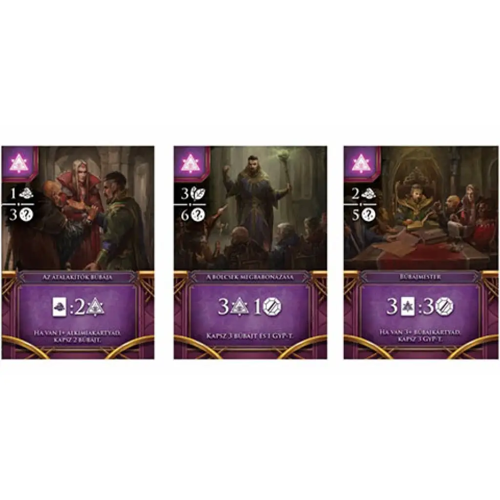 Epoca Magicienilor invită cel mult șase vrăjitori să participe la o competiție al cărei scop este să obțină obiecte magice și să creeze vrăji puternice pentru a dobândi cunoștințe și putere. În timp ce își adună relicvele mistice, observă trecerea lunilor, care amplifică puterea anumitor școli magice, permițând vrăjitorilor să vrăjească la apogeul puterii lor! Într-o rundă, jucătorii aleg o singură carte din teancul primit. După ce au ales o carte, jucătorii pasează restul cărților în sensul acelor de ceasornic și decid dacă adaugă cartea nou dobândită la tabloul lor sau o aruncă pentru a-și spori abilitățile și a vrăji mai eficient. Marcajele lunare alese aleatoriu le spun jucătorilor ce vrăji pot folosi. Astfel, sincronizarea execuției vrăjilor este aproape la fel de importantă ca vrăjile în sine. Cărțile aparțin școlilor de Farmece, Botanică, Arta Sângelui, Poțiuni, Alchimie și Relicve. În fiecare rundă, se poate folosi un singur tip de vrajă, în funcție de ordinea aleatorie pentru acea rundă. După trei runde, jucătorii își calculează punctele, iar jucătorul cu cele mai multe puncte câștigă.