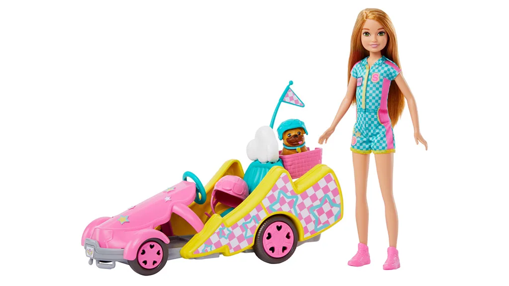 Copiii pot intra pe pistă cu această păpușă Stacie și go-kartul ei. Stacie este gata de viteză cu costumul ei de curse și companionul ei cățeluș. Setul de joc include o păpușă, un cățeluș, un go-kart, un steag detașabil, un coș detașabil, un set de autocolante și trei accesorii.