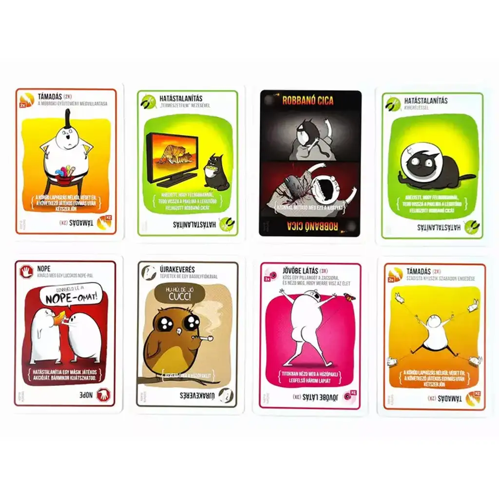 Exploding Kittens: Ediția NSFW este un joc de petrecere hilar, care garantează râsul necontrolat cu pisici explozive și o tematică destinată adulților! Acest joc de societate extrem oferă o experiență rapidă și amuzantă, în care jucătorii încearcă cu orice preț să evite să tragă o carte cu pisică explozivă din pachet.