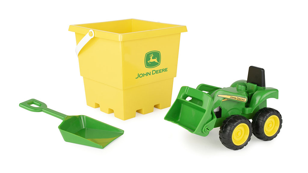 Fiecare set conține o lopată, o găleată și un vehicul: un basculant galben de construcții John Deere (Set de Construcții) sau un tractor verde John Deere cu încărcător (Set de Fermă). Pe lângă utilizarea în nisipar, piesele sunt potrivite și pentru zăpadă, oferind astfel distracție suplimentară de iarnă.Aceste seturi sunt ideale pentru copiii care iubesc să construiască și să creeze. Vehiculele "John Deere" sunt de calitate excelentă și durabile, astfel încât se pot bucura de joc pentru o perioadă lungă de timp. Cu ajutorul "lopetei" și "găleții", copiii pot construi castele de nisip și de zăpadă creative, dezvoltându-și astfel îndemânarea și imaginația. "Basculanta" și "tractorul" completează perfect jocul, deoarece copiii pot transporta cu ele materialele de construcție, fie că este vorba de nisip sau zăpadă.
