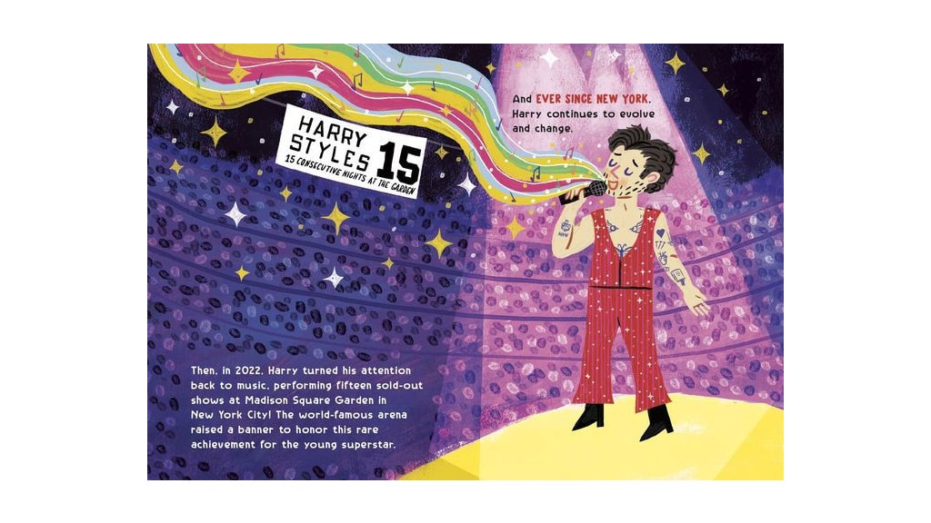 Cartea are ilustrații unice și liniștitoare. Aceste ilustrații nu doar că subliniază atmosfera poveștii, ci îmbogățesc și experiența vizuală, permițând cititorului să se cufunde complet în lumea cărții. Detaliile și paleta de culori ale ilustrațiilor creează o atmosferă specială, care contribuie la farmecul cărții.Cartea ilustrată, economică, urmărește drumul cântărețului spre celebritate, făcând referire la perioada petrecută în emisiunea The X Factor, ca membru al trupei One Direction, precum și în filme precum Dunkirk. Fanii lui Harry Styles de toate vârstele pot recunoaște diferitele titluri de melodii care apar pe parcursul poveștii! Cartea nu doar că prezintă cariera sa muzicală, ci oferă și o privire în viața sa personală și în dezvoltarea sa artistică, aducând astfel cititorii și mai aproape de acest interpret iconic.