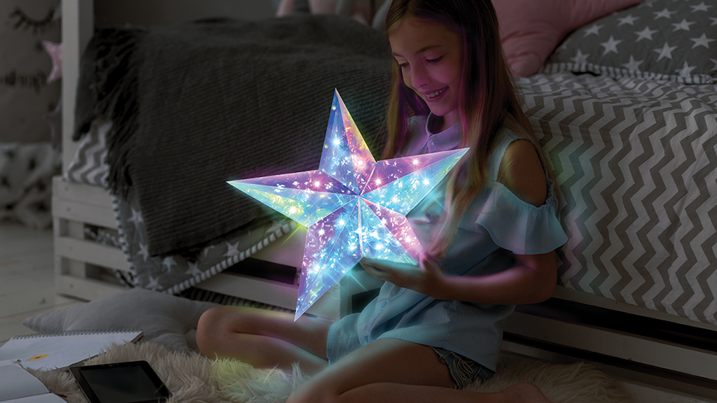 Rezolvarea de puzzle-uri întâlnește decorarea DIY în acest set, cu ajutorul căruia copiii pot crea o lampă în formă de stea, cu prismă, care poate fi conectată la USB și luminează. Această activitate nu doar dezvoltă creativitatea și îndemânarea, ci este și o decorațiune distractivă și utilă pentru orice cameră. Copiii pot arăta cu mândrie lampa lor unică, realizată de ei, în timp ce învață jucăuș despre electricitate și design.