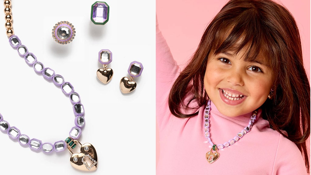 Fiecare set de bijuterii dulci conține inele, cercei cu clips și coliere inspirate de culorile pastelate de primăvară și fluturi. Colecția include și ochelari de înot jucăuși, de culoare mov, pentru ca copiii să plutească la modă în apă. Cu benzi elastice confortabile și pietre strălucitoare, copiii vor dori să rămână doar în această ceață de lavandă!