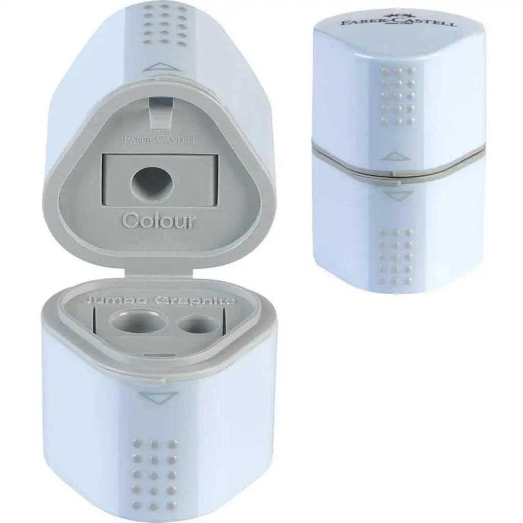 Familiarizează-te cu ascuțitoarea Faber-Castell Grip 2001 Trio, care va fi un accesoriu practic și stilat pentru instrumentele de scris ale copilului tău. Această ascuțitoare de culoare albastru cobalt are trei orificii de dimensiuni diferite: unul pentru creioanele de dimensiune standard, unul pentru creioanele grafit subțiri și unul pentru cele groase, de tip jumbo. Zona "Grip" de pe partea de sus a ascuțitorii asigură o utilizare fără alunecare, în timp ce recipientul colectează așchiile, menținând astfel curățenia pe birou. Capacul corespunzător previne împrăștierea așchiilor. Lamele de oțel inoxidabil de înaltă calitate asigură o ascuțire netedă și uniformă de fiecare dată.