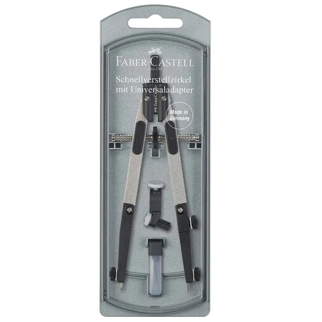 Faber-Castell: Set de compas cu livrare rapidă, cu adaptor universal – culoare argintieFaber-Castell: Set de compas cu livrare rapidă, cu adaptor universal – culoare argintieFaber-Castell: Set de compas cu livrare rapidă, cu adaptor universal – culoare argintieFaber-Castell: Set de compas cu livrare rapidă, cu adaptor universal – culoare argintie