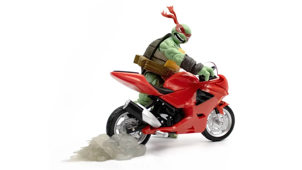 Fie că vorbim despre un copil din anii 80, 90 sau 2000, toți se vor bucura de acțiunea pe care această figurină Raphael la scară 1:15 o oferă. Figurina și motocicleta Raphael, concepute pentru copii de 8 ani și mai mari, sunt inspirate de banda desenată IDW Teenage Mutant Ninja Turtles Nr. 110. Reprezentarea lui Raphael a fost inspirată de arta legendarului artist de benzi desenate, Mateus Santoloucco.