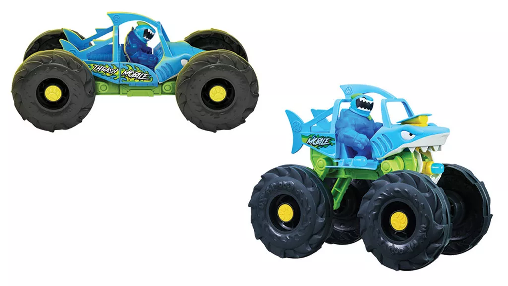 Copiii pot transforma acest vehicul Goo Jit Zu dintr-un vehicul rapid într-un camion monstru atacator, dacă comprimă sau întind aripioara. Vehiculul poate găzdui trei personaje și include o figură exclusivă Thrash.