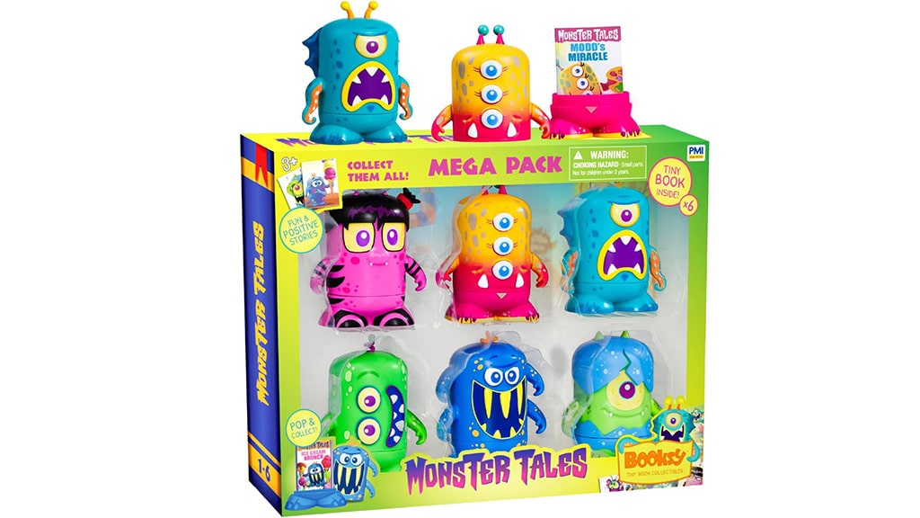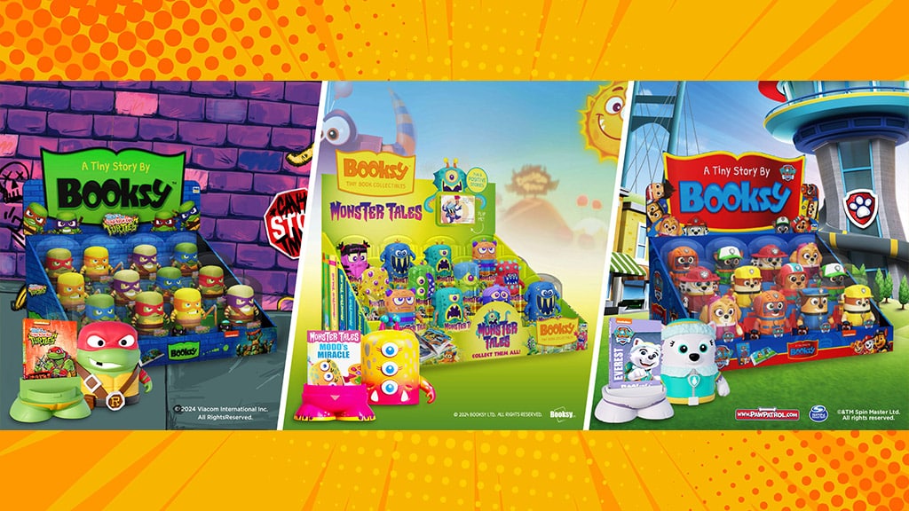 Booksy este o nouă serie de obiecte de colecție sub formă de mini-cărți, care combină jocul cu personaje imaginare cu lectura și posibilitățile unice de expunere. Figurinele Booksy sunt disponibile în mai multe variante, în cadrul a trei linii diferite: Monster Tales, care este o creație originală a PMI Kids’ World; Tales of the Teenage Mutant Ninja Turtles, inspirată de seria animată; și Patrula cățelușilor, inspirată de iconicele cățeluși Spin Master. Fiecare figurină vine într-o cupolă transparentă. O simplă răsucire și tragere dezvăluie mini-cartea din interior.