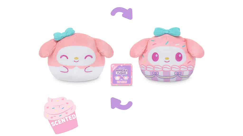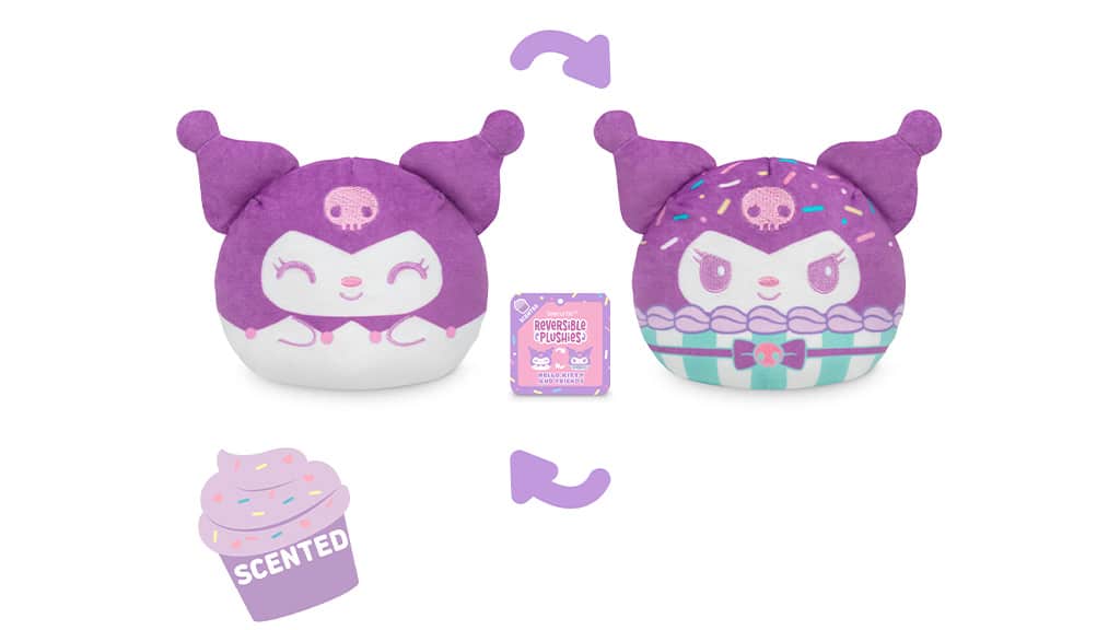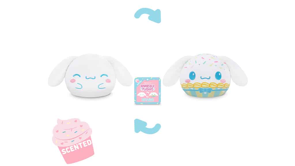 Această colecție de plușuri reversibile conține personajele populare Sanrio, inclusiv pe Hello Kitty, Cinnamoroll, My Melody și Kuromi. Dacă întorci plușul pe dos, Hello Kitty și prietenii ei apar într-un design delicios, cu tematică de cupcake. Fiecare pluș miroase ca o prăjitură proaspăt coaptă, oferind astfel o experiență specială nu doar vizual, ci și olfactiv. Aceste plușuri sunt perfecte ca și cadou sau pentru colecționari care iubesc surprizele drăguțe și parfumate.