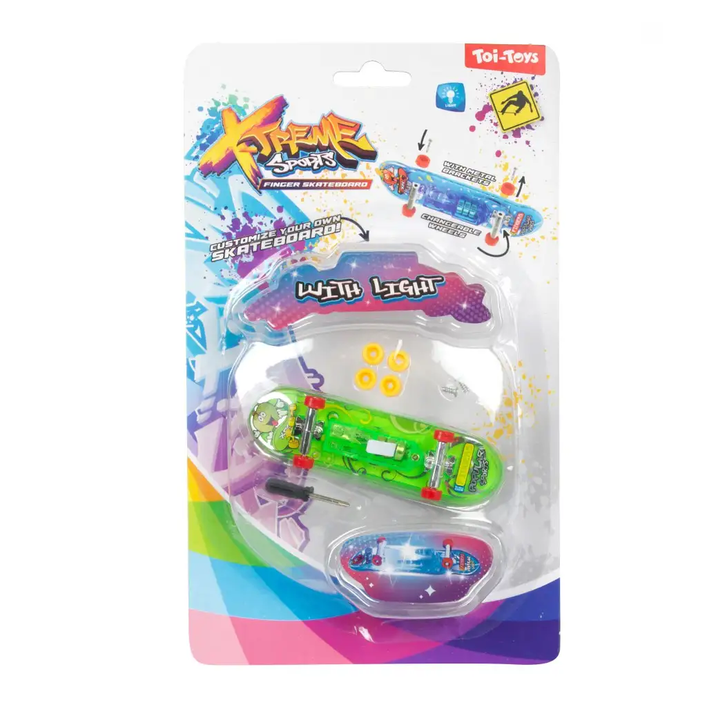 Îmbunătățește-ți trucurile de skateboard cu fingerboard-ul luminos! Acest skateboard mic, care se potrivește perfect în mână, este ideal pentru cei care iubesc provocările și trucurile spectaculoase. Fingerboard-ul cu funcție de iluminare oferă efecte speciale de lumină, astfel încât poți realiza acrobații impresionante chiar și în întuneric. Materialul durabil și piesele interschimbabile garantează o durată lungă de viață și personalizare.