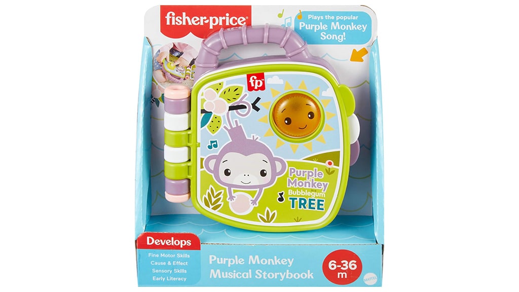 Această carte muzicală redă melodia „Maimuța Mov”, cunoscută din Fisher-Price Deluxe Kick & Play Piano Gym. Prin apăsarea butonului soare zâmbitor de pe copertă pornește muzica și jocul de lumini. La fiecare răsfoire a paginilor se aud melodii și sunete noi, specifice fiecărei pagini. Această carte nu doar distrează, ci și dezvoltă simțurile și abilitățile copilului, în timp ce acesta se familiarizează jucăuș cu lumea muzicii și a sunetelor.