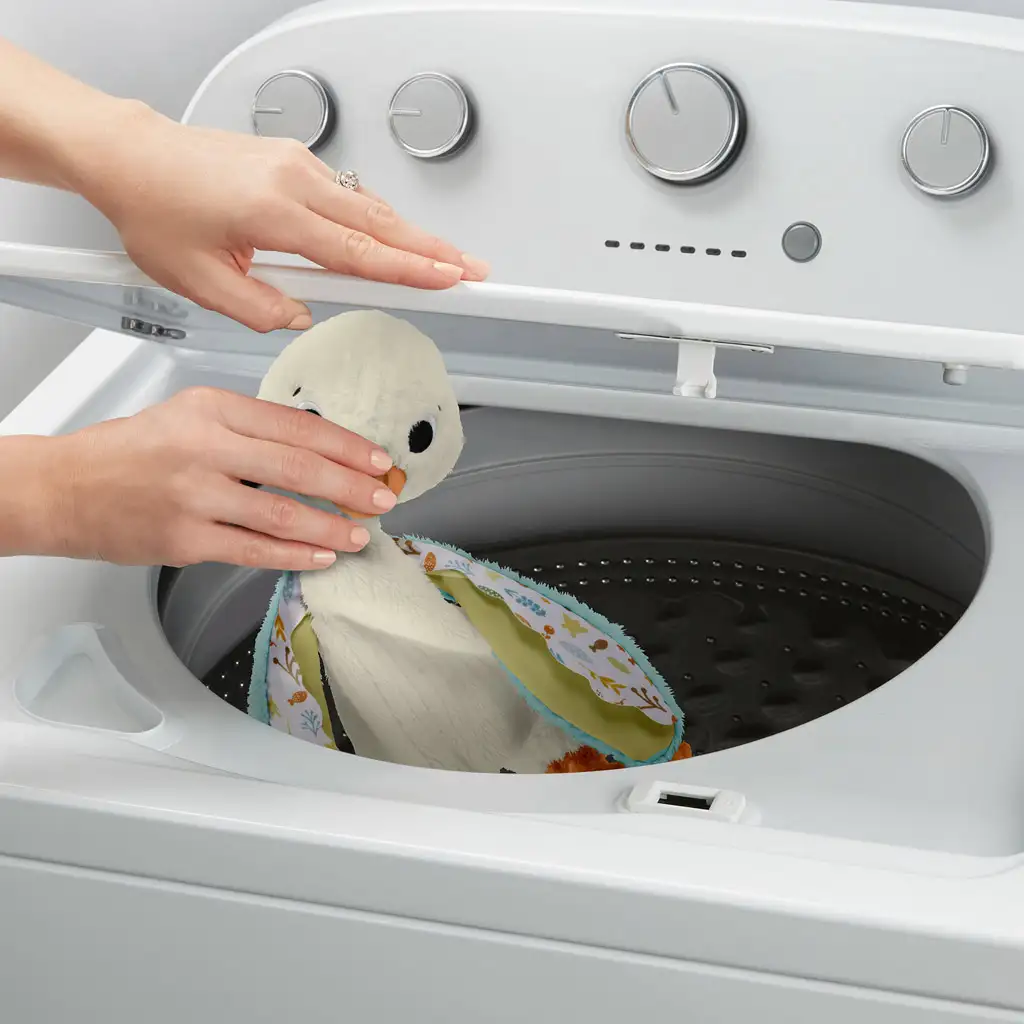 Jucăria poate fi spălată în mașina de spălat. Recomandată de la naștere.