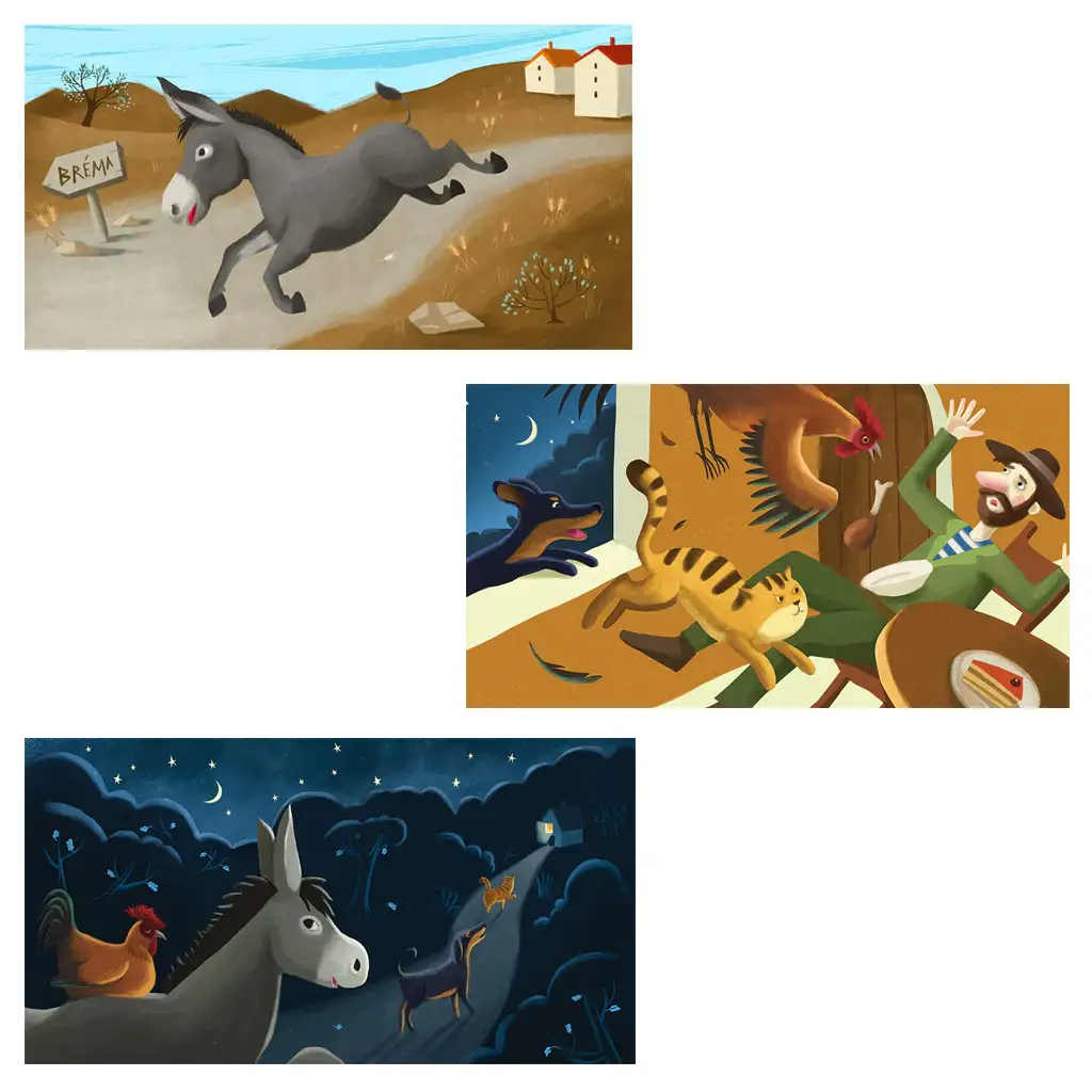 Redescoperiți acest basm datorită creațiilor creative ale lui Ildi Horváth și lăsați ca desenele din "Muzicanții din Bremen" să aducă la viață personajele iconice!