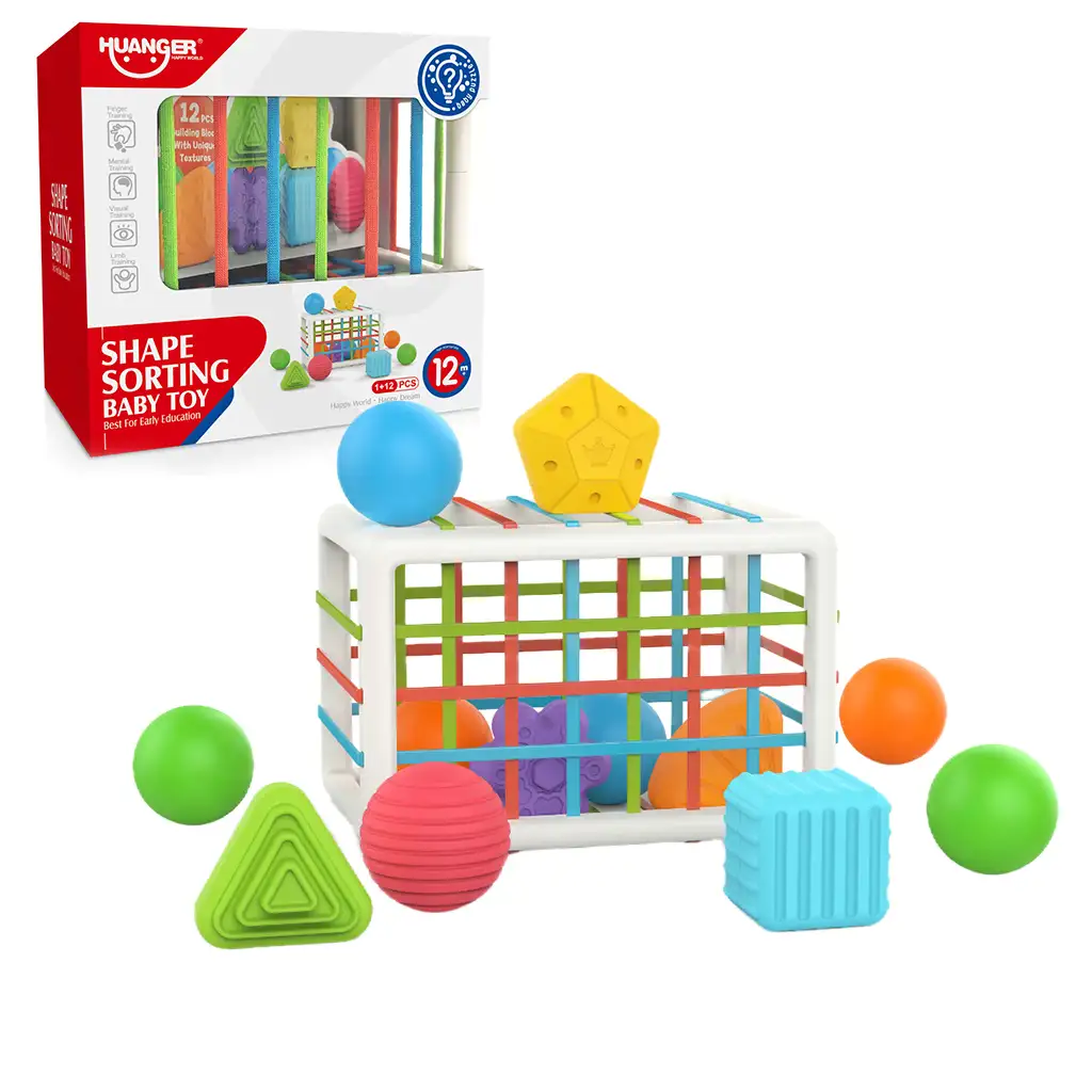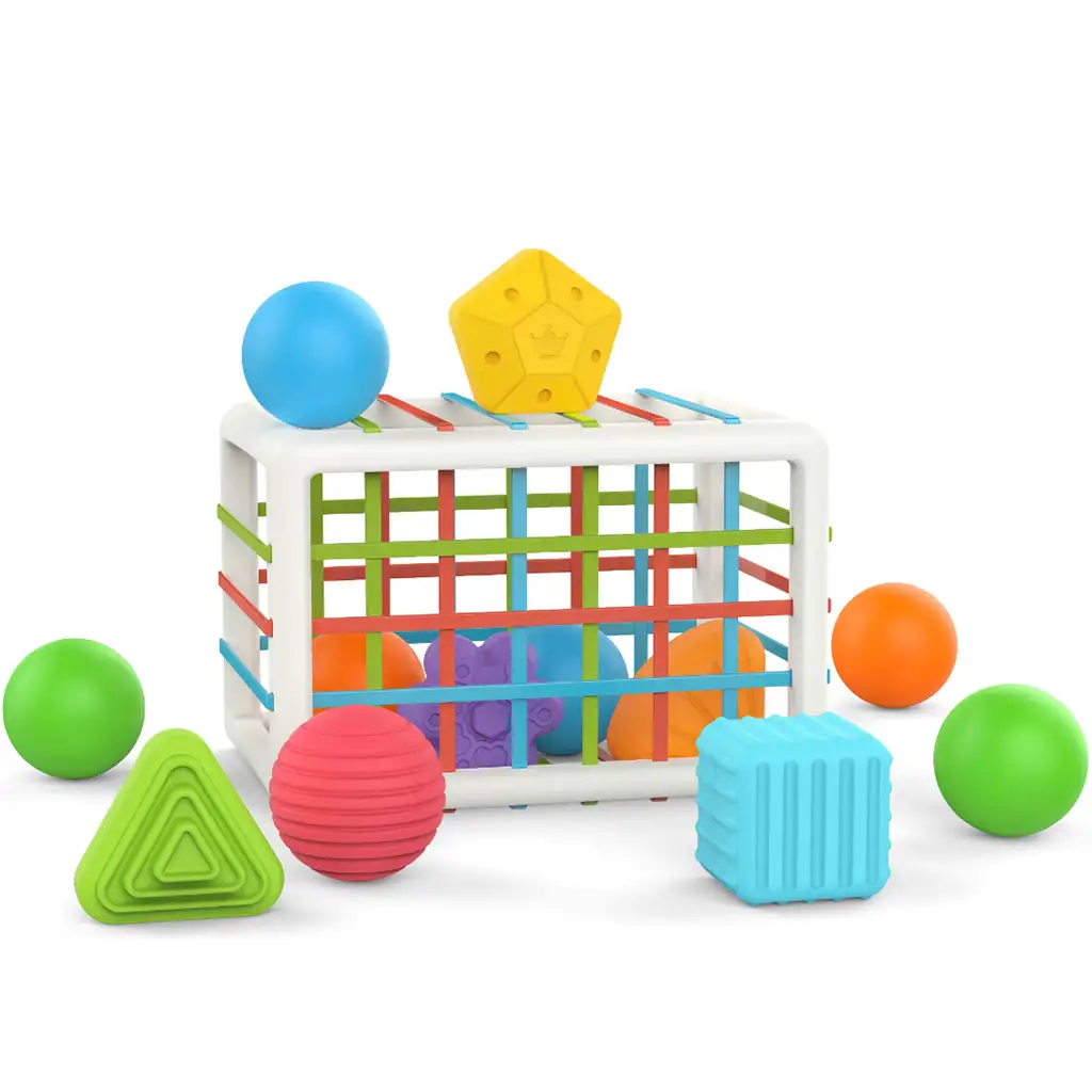 Acest joc de sortare a formelor și dezvoltare tactilă, de dimensiuni mari și în formă de dreptunghi, este un joc fascinant și educativ pentru copii mici. Setul include un joc cu un cadru de plastic mare, în formă de dreptunghi, pe fiecare latură a căruia se află fire de diferite culori și texturi, creând diverse deschideri și suprafețe.