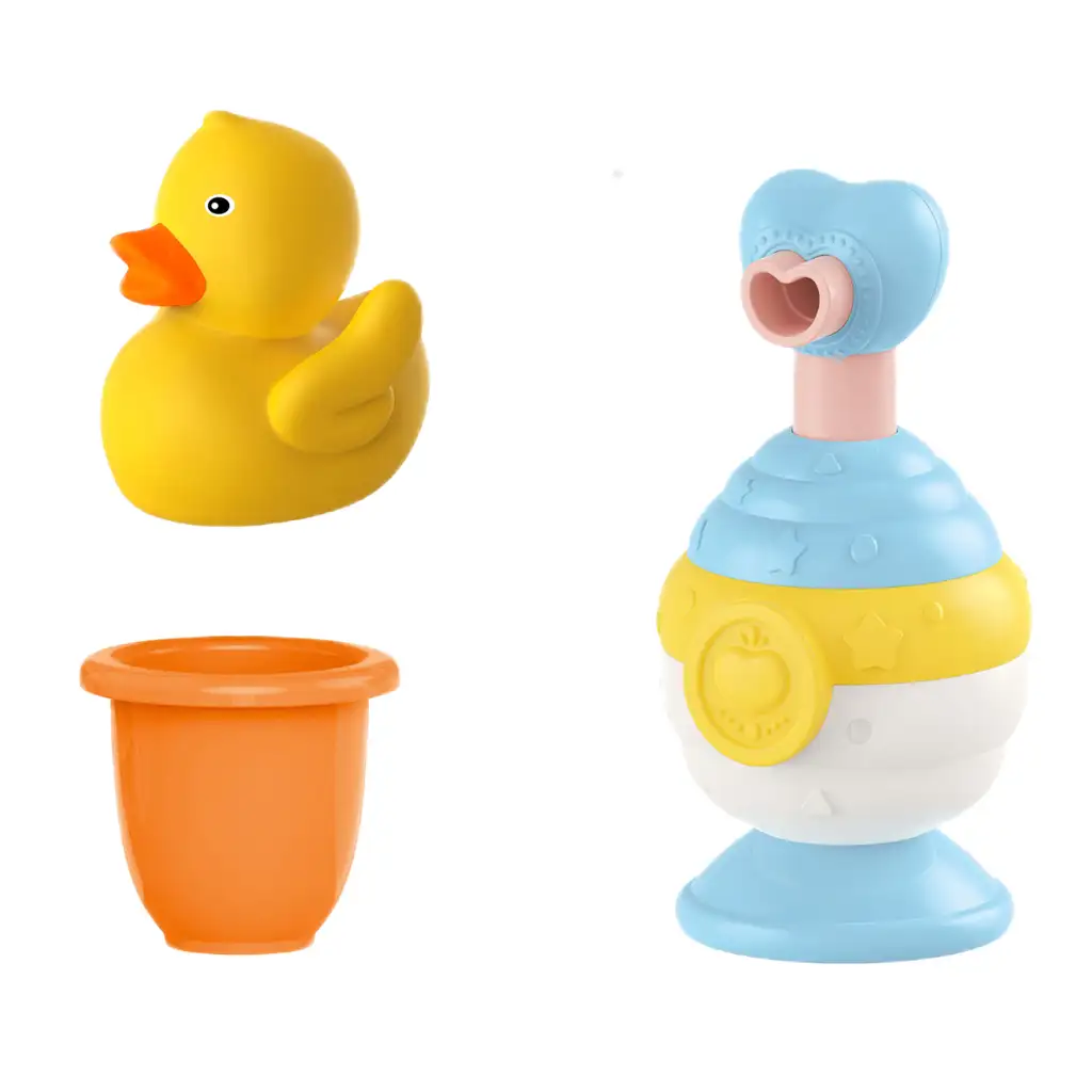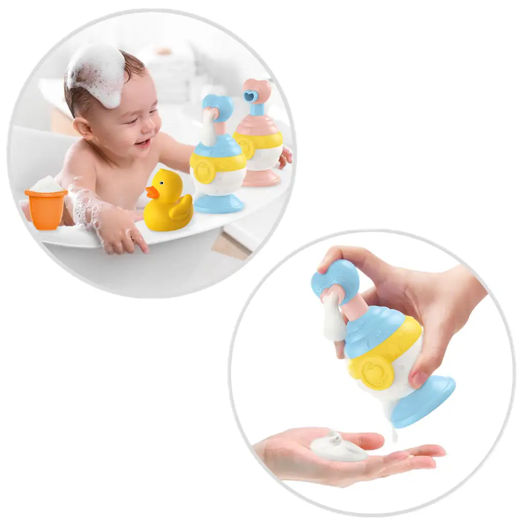 Setul de Jucării de Baie cu Rață include tot ce este necesar pentru ca baia copilului tău să fie veselă și distractivă. Acest pachet conține un dozator de gel de duș cu pompă în formă de inimă, ușor de utilizat de către copil, care ajută la transformarea procesului de curățare într-o activitate și mai amuzantă.
