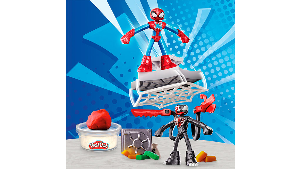 Omul Păianjen se confruntă cu Venom în acest set, care include figurinele Omul Păianjen și Venom, un seif plin de comori pe care Venom le poate fura, un cilindru, o ștampilă care creează plase uriașe din Play-Doh, foarfeca Play-Doh a lui Venom și patru cutii de Play-Doh.