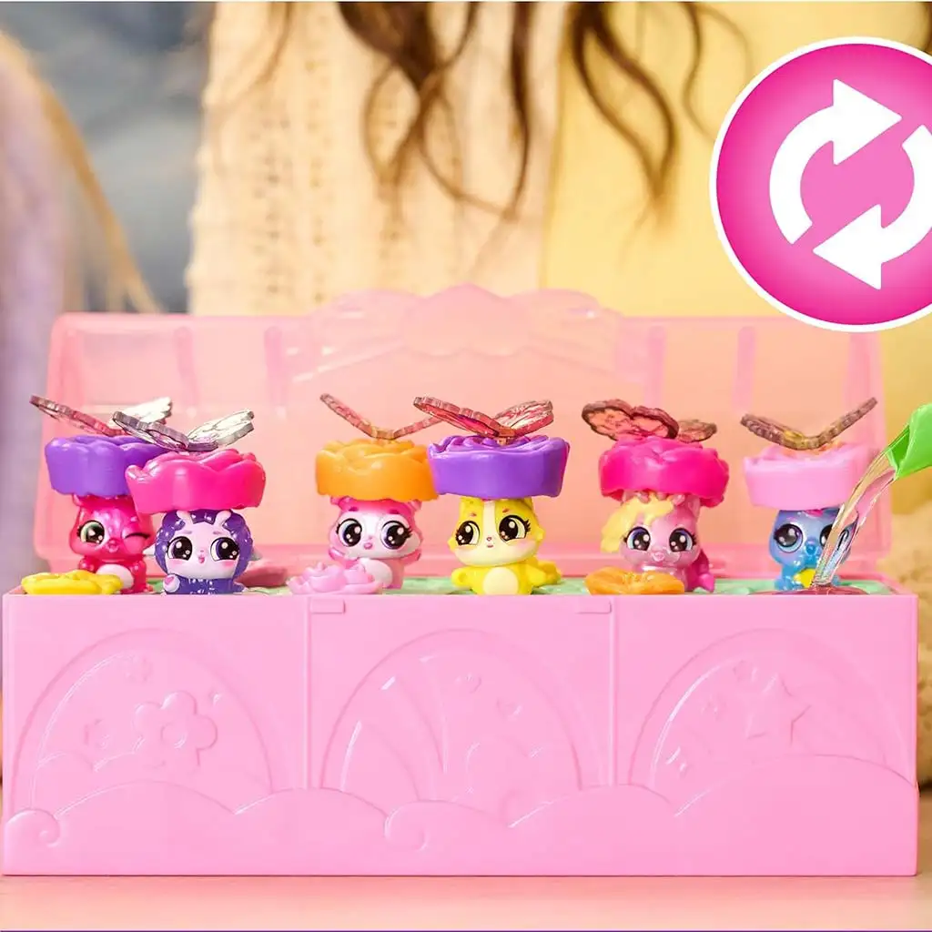 Pachetul Bloom Bash vine într-o cutie practică de depozitare roz, care, odată deschisă, se transformă într-un spațiu complet de joacă. Pachetul conține 6 figurine Bloomables, fiecare având culori, expresii faciale și detalii unice. Copiii pot roti, schimba și aranja figurinele, inventând propriile povești în lumea florală Hatchimals. Elementele decorative ale cutiei – flori, accesorii și detalii mici – amplifică și mai mult experiența de joc creativă.