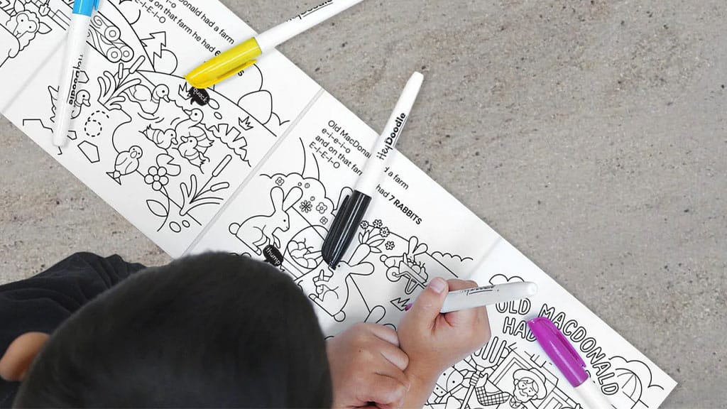 Cartea de colorat Old MacDonald realizată de HeyDoodle este o alegere excelentă pentru călătorii. Această carte de colorat nu este doar distractivă, ci și dezvoltă creativitatea și abilitățile motorii fine ale copiilor. Este ușor de transportat, fiind ideală pentru călătorii lungi sau perioade de așteptare. Coloratul ajută copiii să își dezvolte concentrarea și răbdarea, în timp ce se bucură de lumea culorilor. Sursa: HeyDoodleNe place că acest covor senzorial combină creativitatea, povestirea și arta într-o carte unică. Ajută copiii să învețe lucruri noi — adesea fără să-și dea seama că învață — în timp ce le stimulează creativitatea și munca artistică. Cu ajutorul HeyDoodle, zilele nesfârșite de foi de hârtie s-au încheiat; copiii pot folosi culori și își pot descoperi propriul artist interior cu această carte.