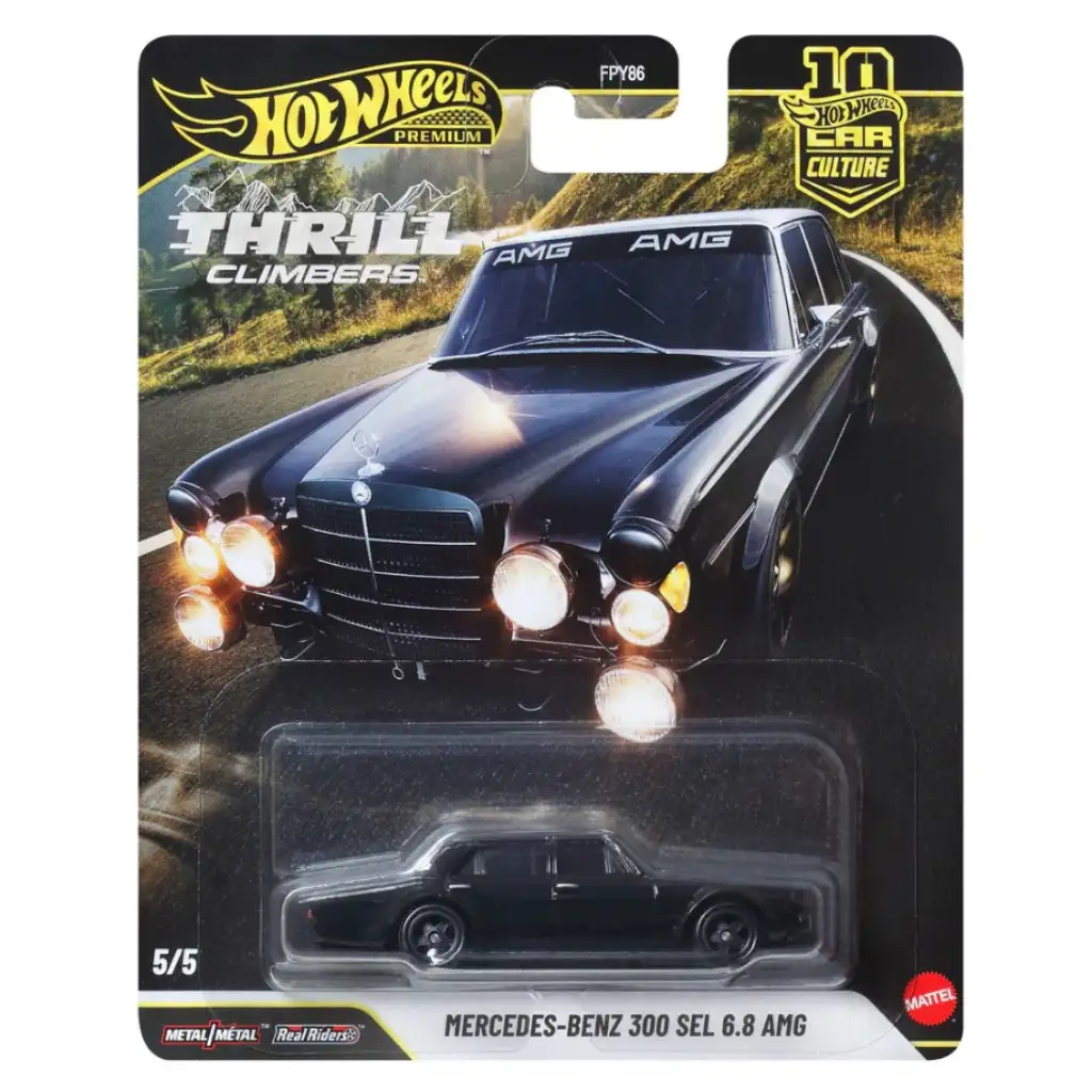 Modelul Mercedes‑Benz 300 SEL 6.8 AMG din seria Hot Wheels Premium Cool-túra aduce un omagiu legendarului automobil de curse „Red Pig”, o piesă iconică a curselor de turisme. Ca parte a seriei Thrill Climbers, acest model evocă atmosfera serpentinelor montane și a pistelor de curse provocatoare, la scara 1:64.