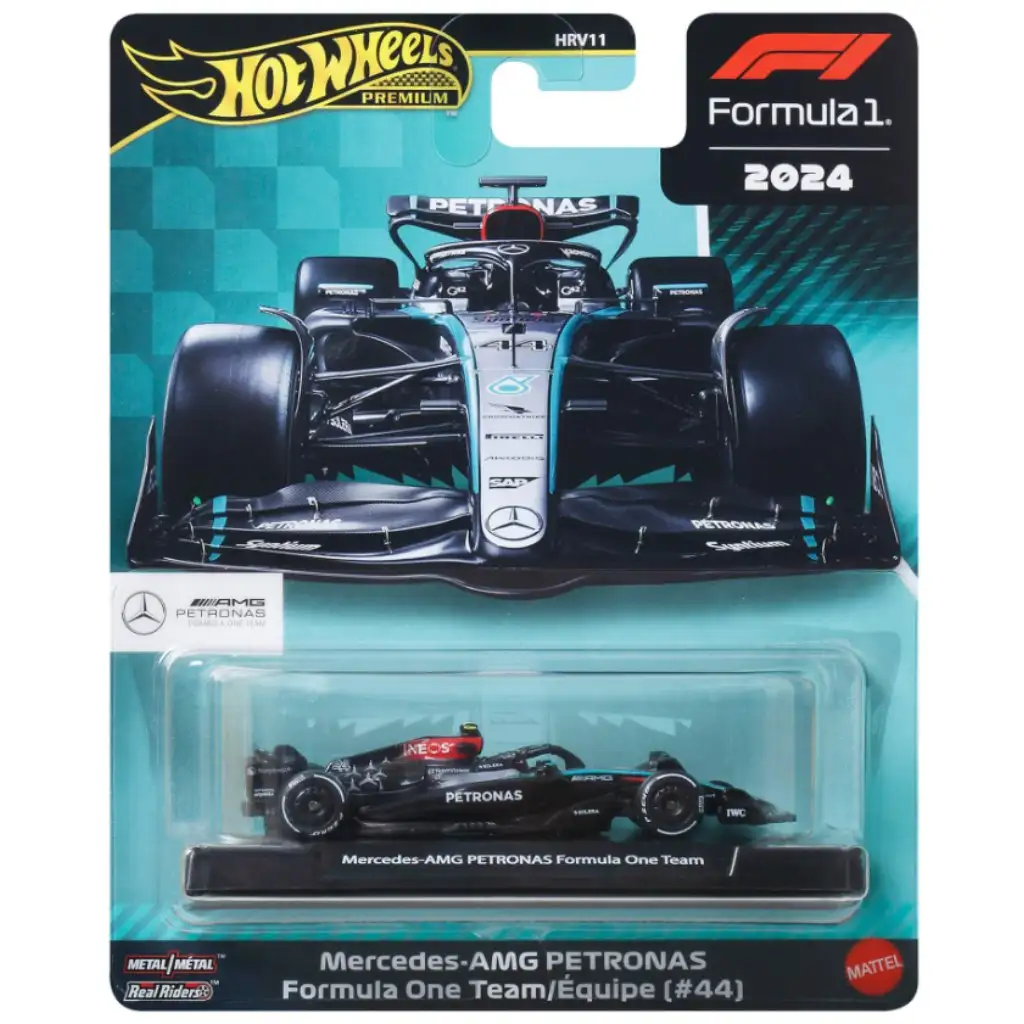 O piesă exclusivă din seria Hot Wheels Premium este modelul Mercedes-AMG PETRONAS Formula 1 Team Nr. 44, care reprezintă una dintre cele mai cunoscute mașini de curse ale sezonului 2024 de Formula 1. Schema de culori iconică, negru-turcoaz a echipei, grafica detaliată a sponsorilor și elementele aerodinamice realizate cu precizie reflectă fidel rafinamentul tehnic și spiritul competitiv al mașinilor Mercedes F1. Modelul redă proporțiile și caracterul mașinii reale de curse în cele mai mici detalii.