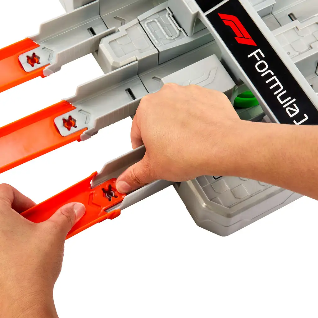 Setul conține și trei mașinuțe la scară 1:64 inspirate de echipe reale de Formula 1, cum ar fi Oracle Red Bull Racing, MoneyGram Haas F1 Team și Williams Racing. Datorită sistemului Speed Snap Track, pista se poate asambla ușor și poate fi extinsă cu alte elemente Hot Wheels (comercializate separat), astfel încât copiii să poată crea mereu noi experiențe de cursă.