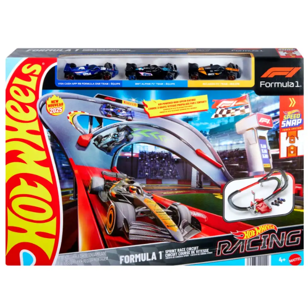 Viteza, emoția și cursele se mută acum în camera copiilor cu ajutorul setului de pistă Hot Wheels: Formula 1 Sprint! Acest set Hot Wheels complet nou este alegerea perfectă pentru copiii care adoră Formula 1 și ar dori să participe la propriul lor campionat – și asta cu 3 mini-mașinuțe F1 spectaculoase, inspirate de echipe reale.
